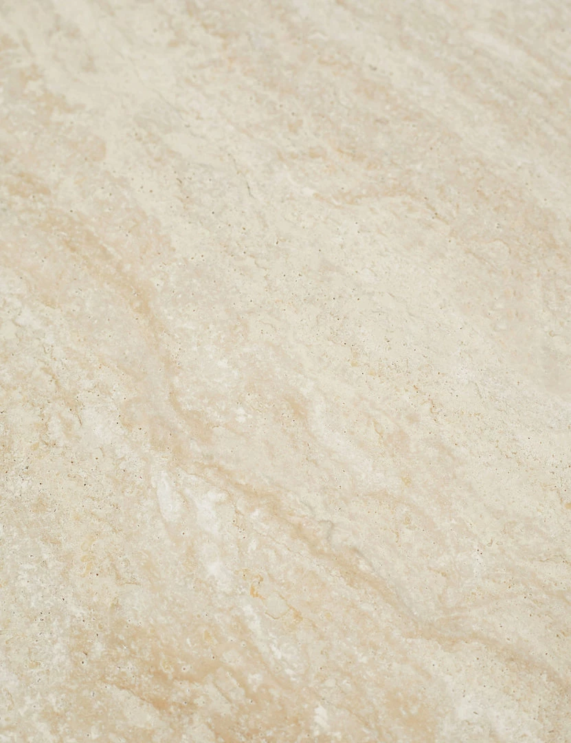 Architectural shapes stunningly highlight the natural materials of ash wood and travertine with this square coffee table. The warm, earth-toned coloring of the travertine top provides a soft, tonal contrast to its x-shaped ash veneer base.