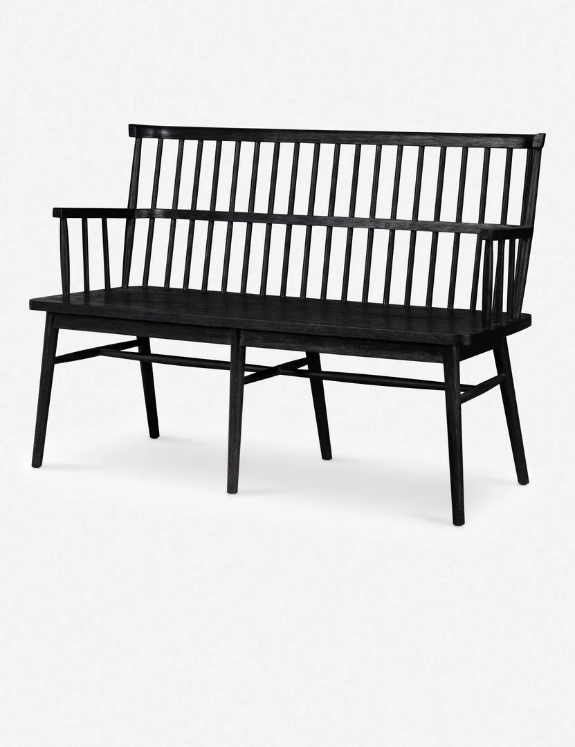 The Lanae Bench is a Scandinavian take on the classic Windsor style. Perfect for entryways or adding a cozy seating option to your dining room, the high wrapped spindle back and deep seat give off a modern farmhouse feel.
