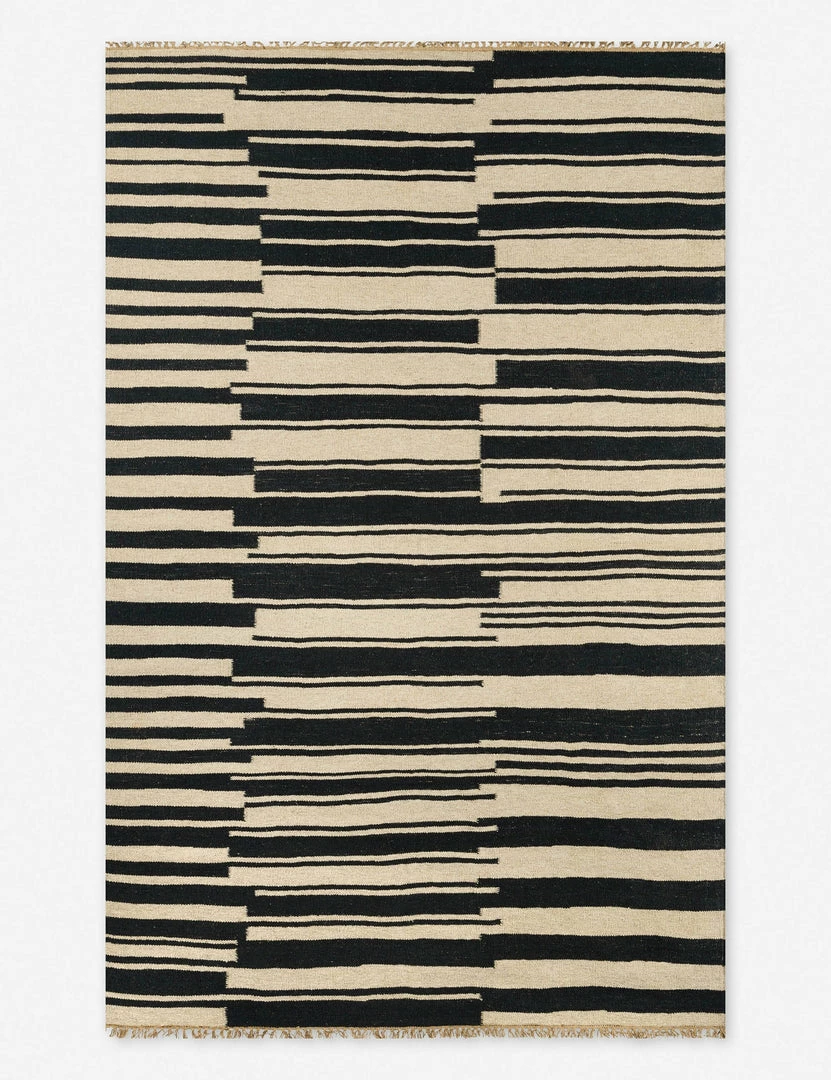 The Tahima rug embraces its handcrafted construction, celebrating the imperfections with an antiqued wash, mismatched linework, and a versatile and casual flatweave pile. Perfect for adding a natural dose of pattern and texture to just about any room!