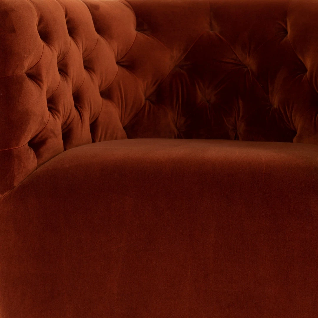 Take old-world elegance for a spin in this swivel chair, upholstered in a plush velvet and tufted for timeless texture.