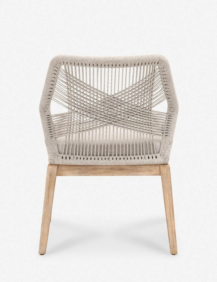 Update your outdoor dining arrangement with this undeniably cool chair. Designed with a steel base, and a rope-wrapped seat with intersecting strands across the back for a modern, geometric appeal.