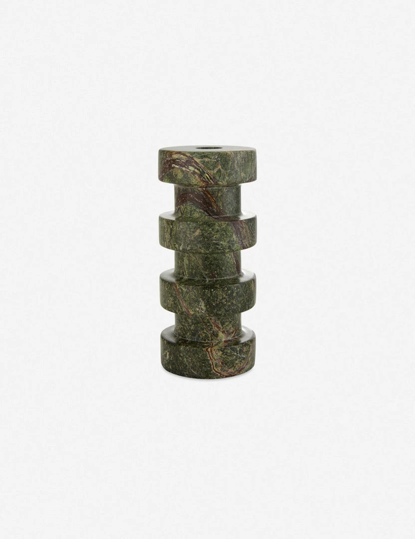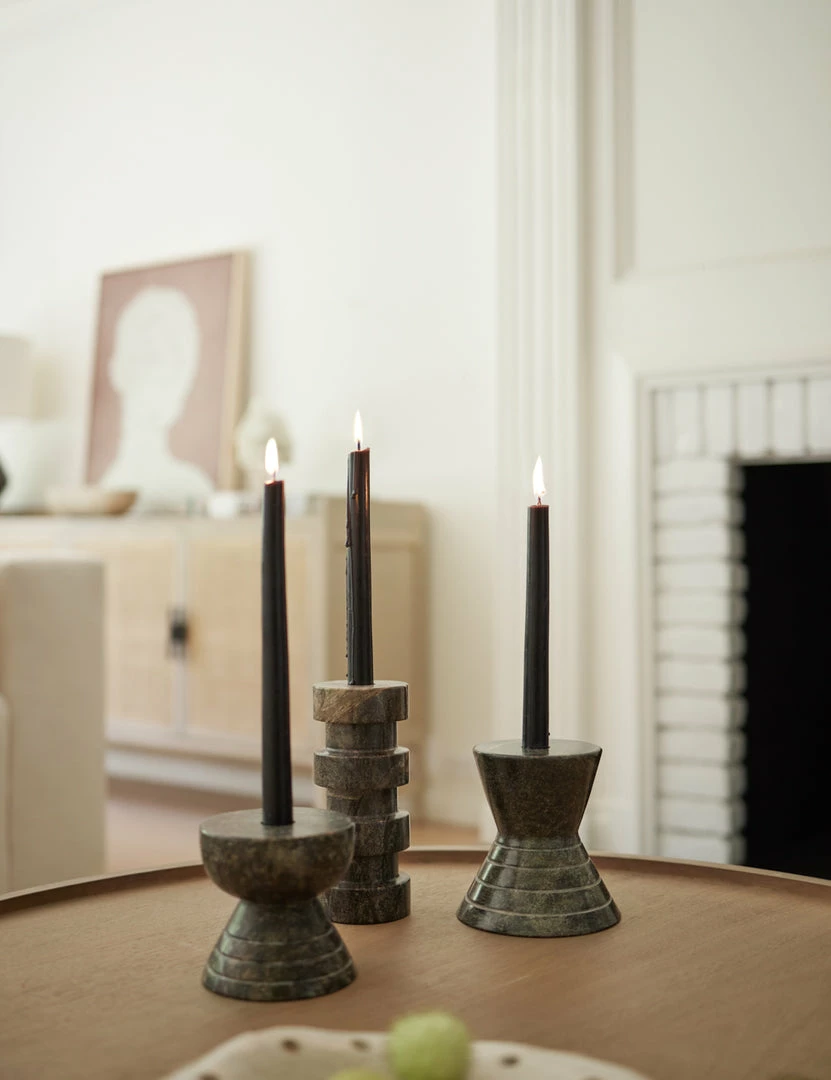 A luxe set of taper candleholders to clad your tablescape or mantel in sculptural appeal. The green marble features rich hues and beautiful veining unique to each piece so that you can add a signature touch to your look.