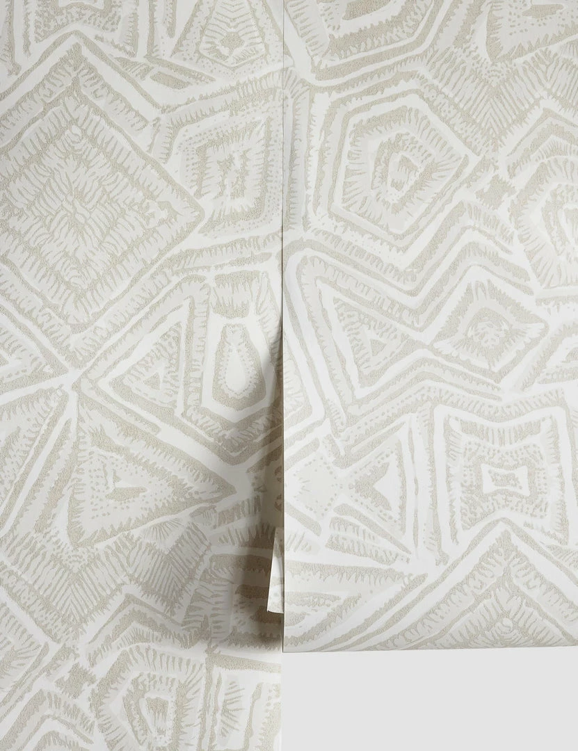 Multidisciplinary artist and activist Malene Barnett’s work envisions a contemporary Black experience rooted in the cultural and artistic traditions of the African diaspora. Her Kindred Collection, exclusive to Lulu and Georgia, reinterprets her hand-built ceramic vessels as tactile paper wall styles. The Malou Wallpaper celebrates the legacy of Afro-Caribbean women potters with its intricate and raised pattern. A chalky white finish offers a tonal look, perfect for styling it in a bathroom or transitional space.