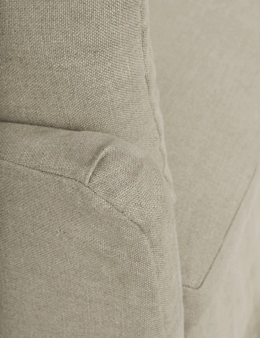 An easy update, this living room sofa brings a casual yet elegant look to your home. Crafted with a linen slipcover-style drape, this comfortable sofa features subtle texture throughout, with a beautiful slope-arm style.