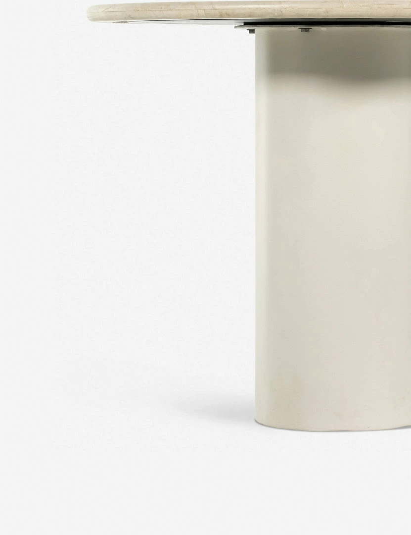 Polish your look with this bistro-style table. A marble top and ivory-finished base-pair curved edges with a monochromatic cream-colored finish to offer a soft visual appeal that wraps retro design notes in a fresh, sophisticated dining table design.