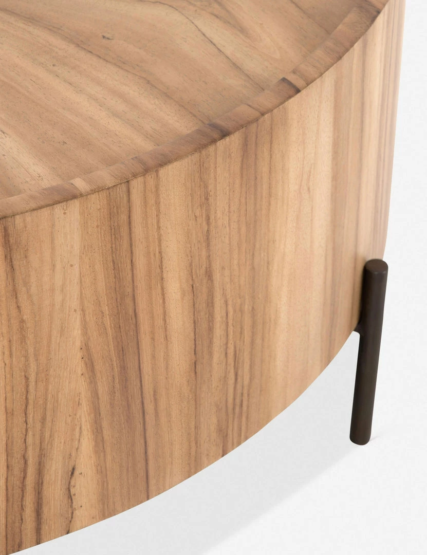 With a wave-like woodgrain pattern running through it, this round coffee table is an artful centerpiece that really brings a living room together. Set in a pair of slim metal legs, this piece also features an inset top for a modern-meets-timeless look.