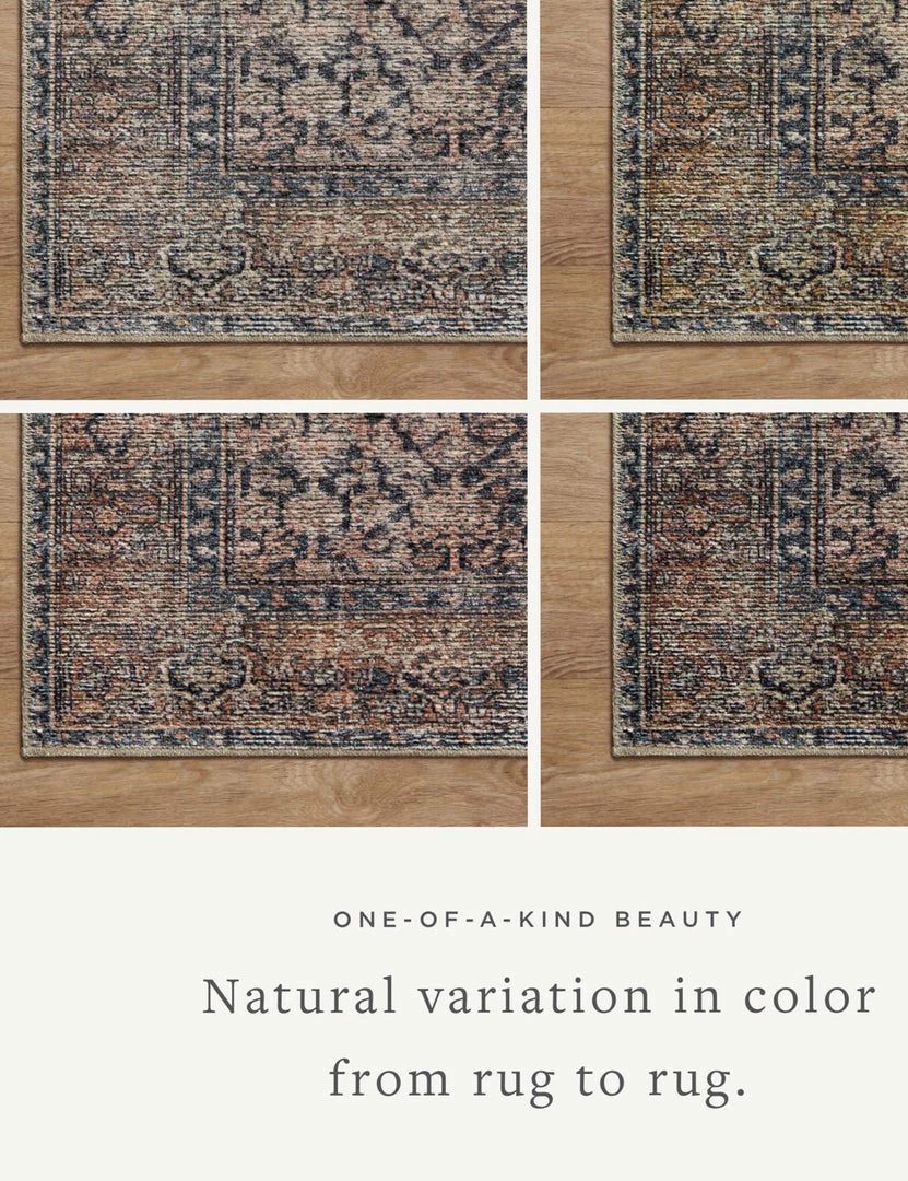 Rich colors with a natural variation unique to each area rug bring a vibrancy and bespoke quality to this distressed design. Pairing a traditional feel with a modern rug construction, the Billie Rug creates a timeless foundation with an easy-care appeal.