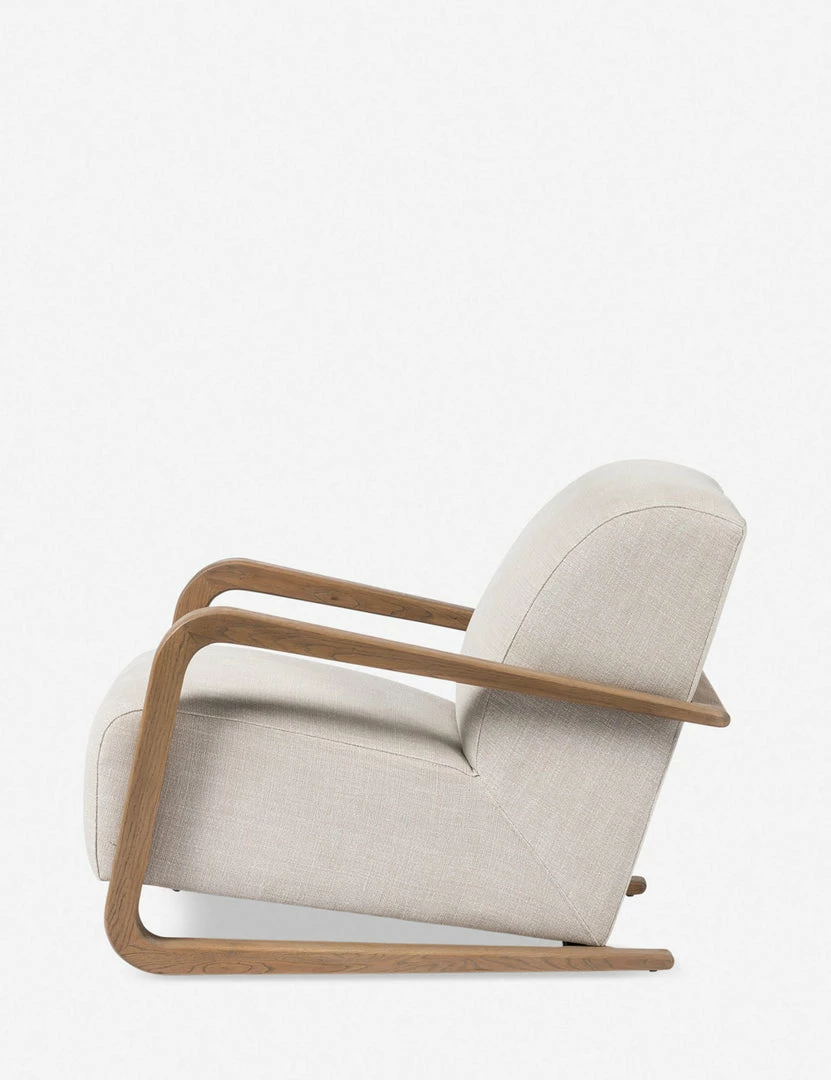 Sculpted arms and a lofted silhouette bring of touch of drama to this low-slung lounge chair design. With a plush seat and linen-blend upholstery, this occasional chair offers a comfortable place to land that will elevate the look and feel of any home office or living space.