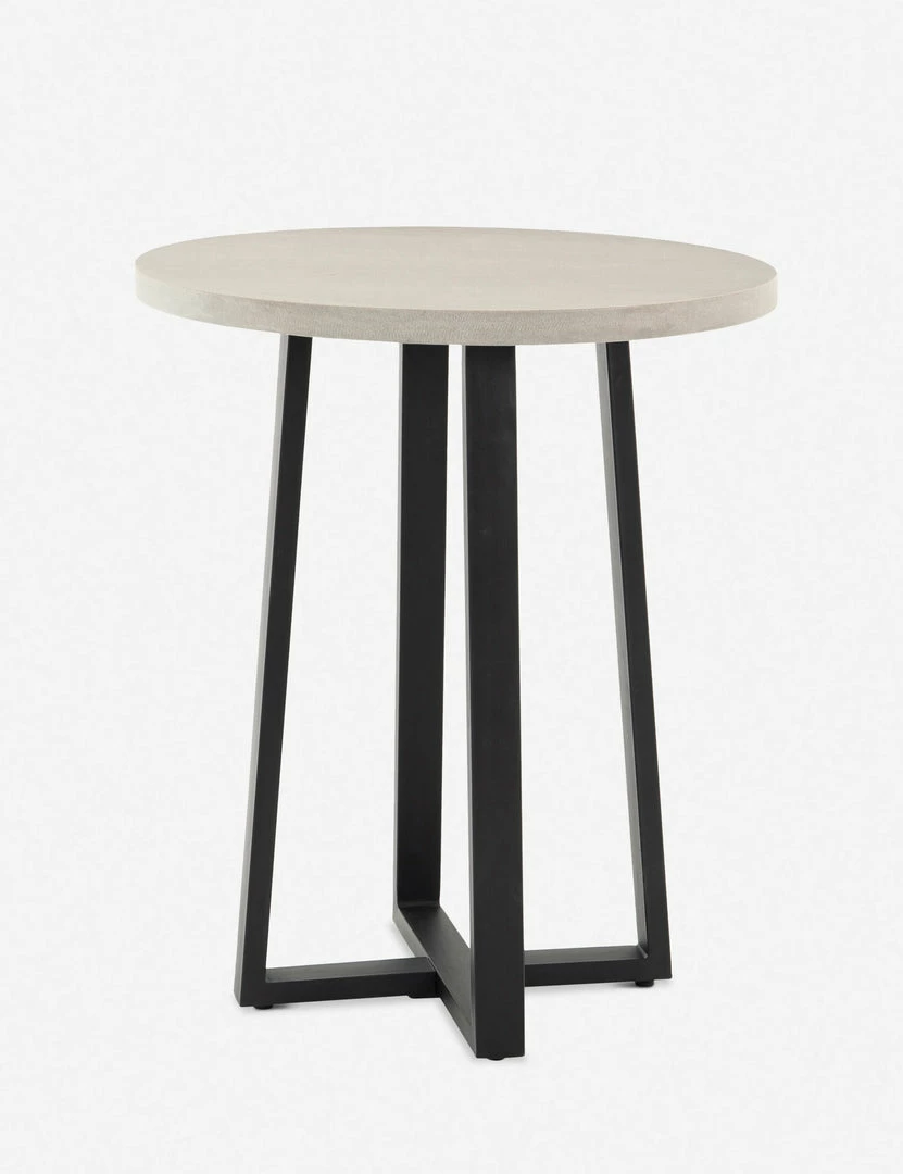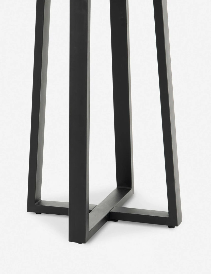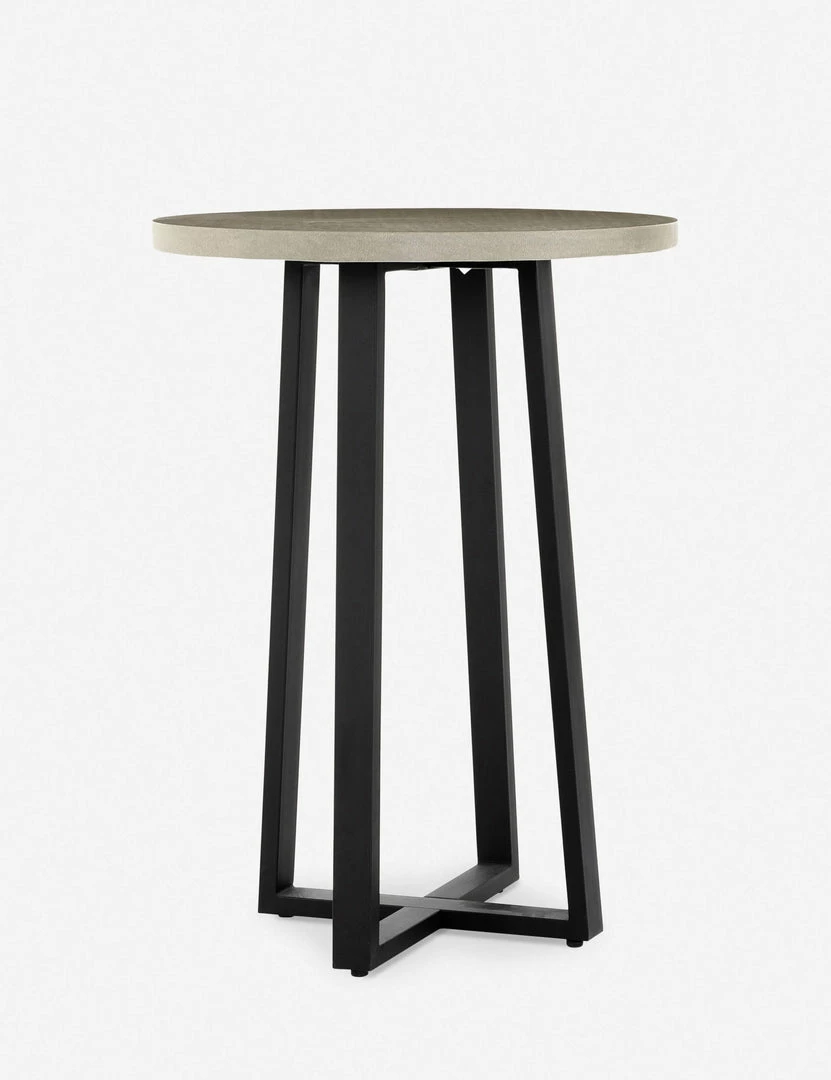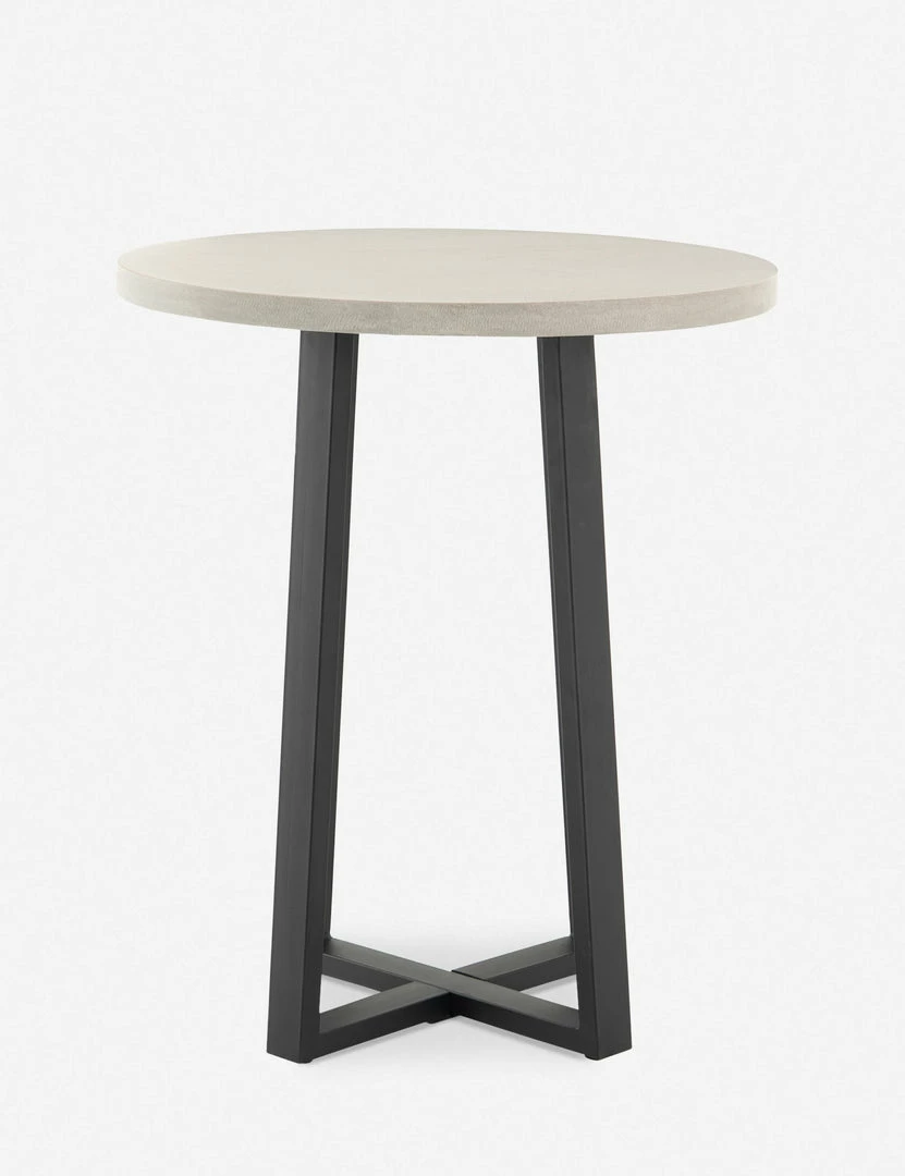 For modern style indoors or out, add this round dining table to the mix. Featuring a lava stone top and angular iron base, this bar-height table offers a minimalistic look with an industrial edge.