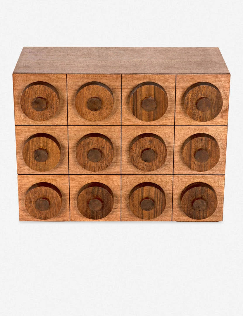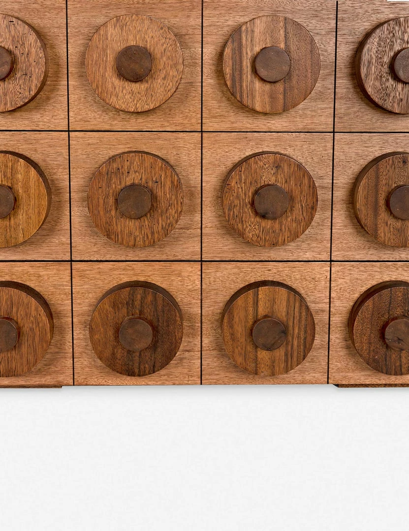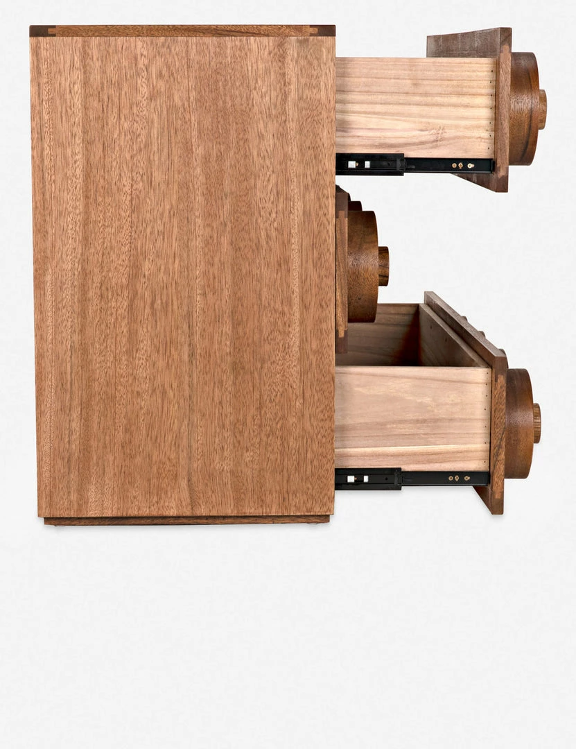 Cylindrical wood drawer pulls clad this dresser with a playful facade for an effortlessly modern feel. We love the compact length and spacious drawers for an eye-catching dresser with small-space potential.