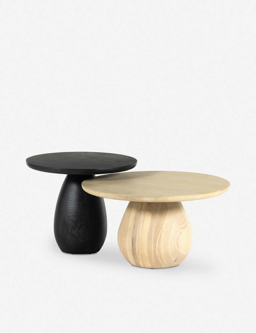 We love the dynamic appeal a bunching table can bring to your living space. With a compact footprint and low profile, this small coffee table can float around your look, offering versatile tablespace for decor, books, or drinks. A chunky tulip base brings a sculptural tone with crisp impact to this wood coffee table design.
