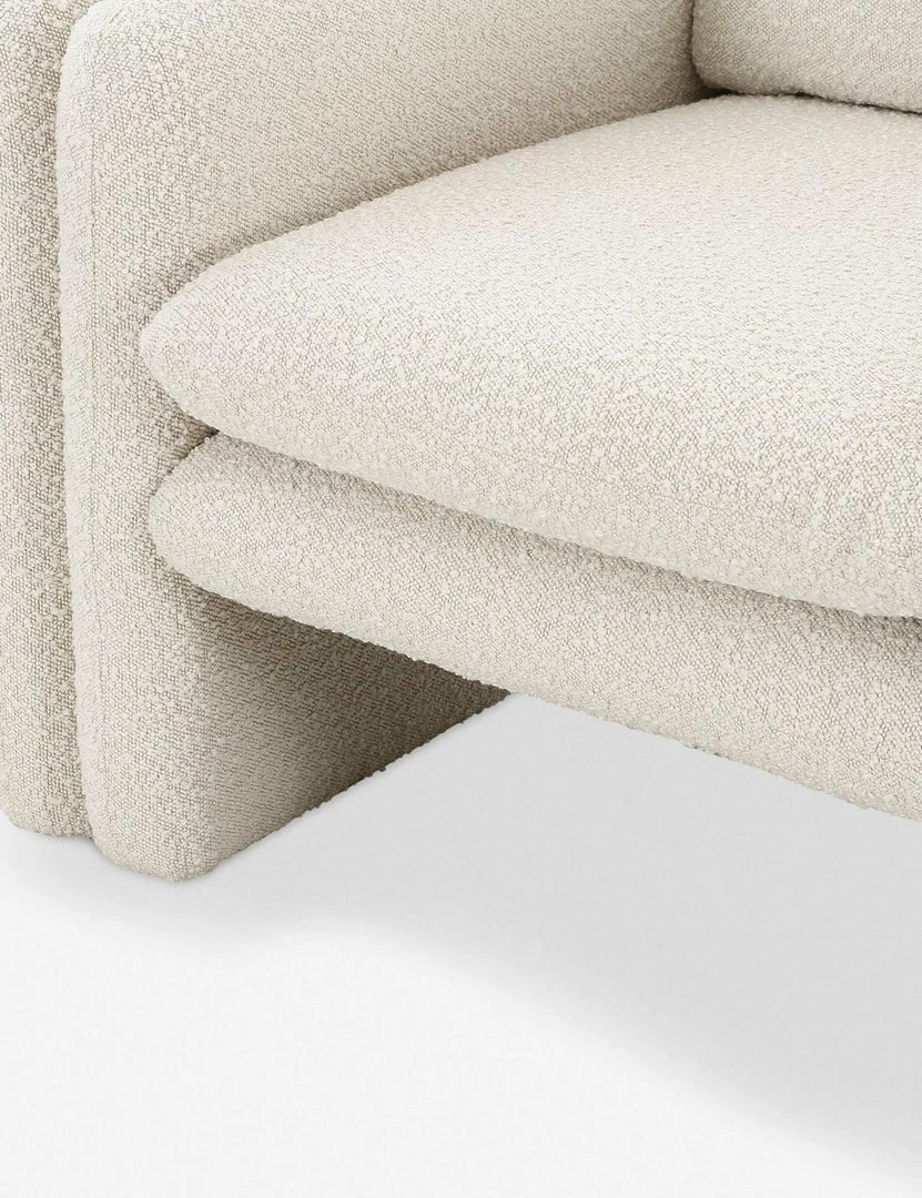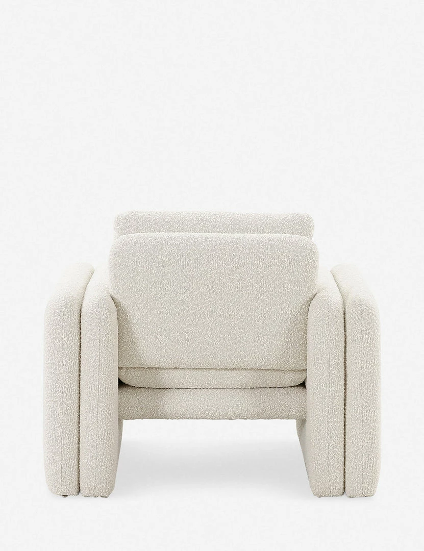 Bring a retro touch to your look with this double layered accent chair. The ultra soft upholstery and plush cushions are the perfect complement to this occasional chair’s clean geometric design. Pair this chair with other sculptural elements for a cozy yet modern lounge feel.