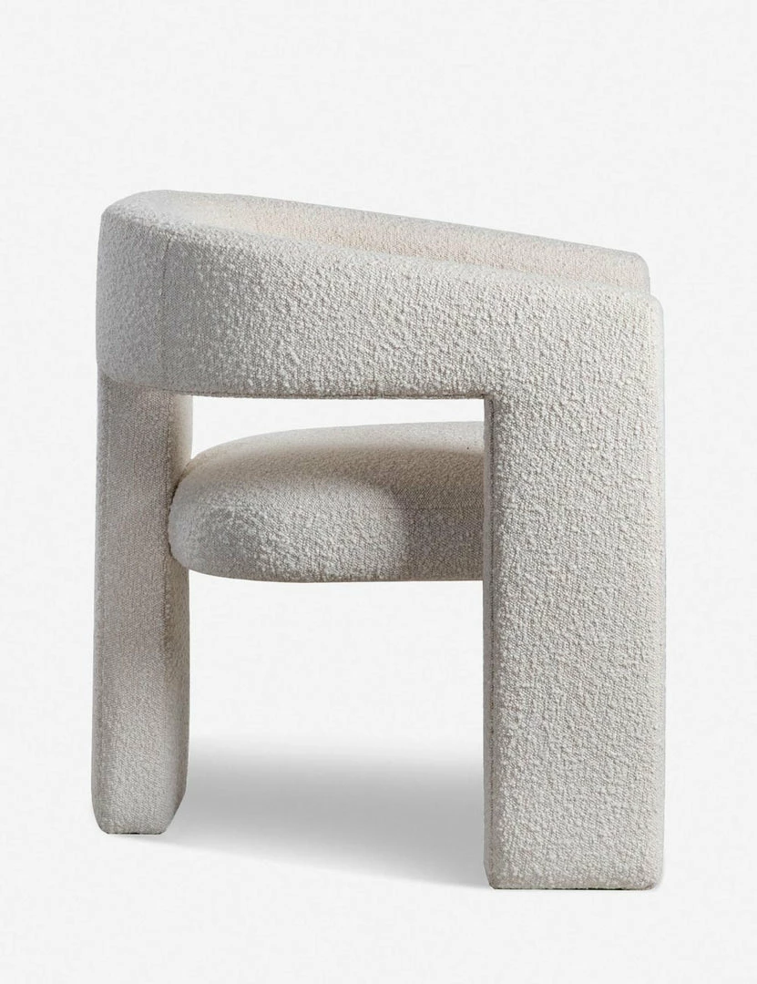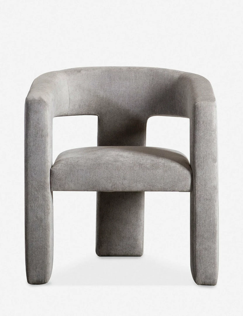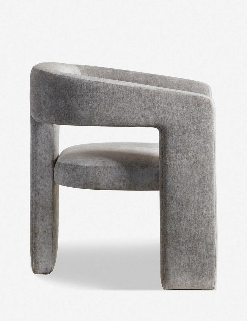 Sculptural lines and a spare frame come together in this dining chair design. The plush seat and soft upholstery offer stylish comfort with a modern tone. This versatile chair can float from your dining room to a home office for a chic and easy place to land.