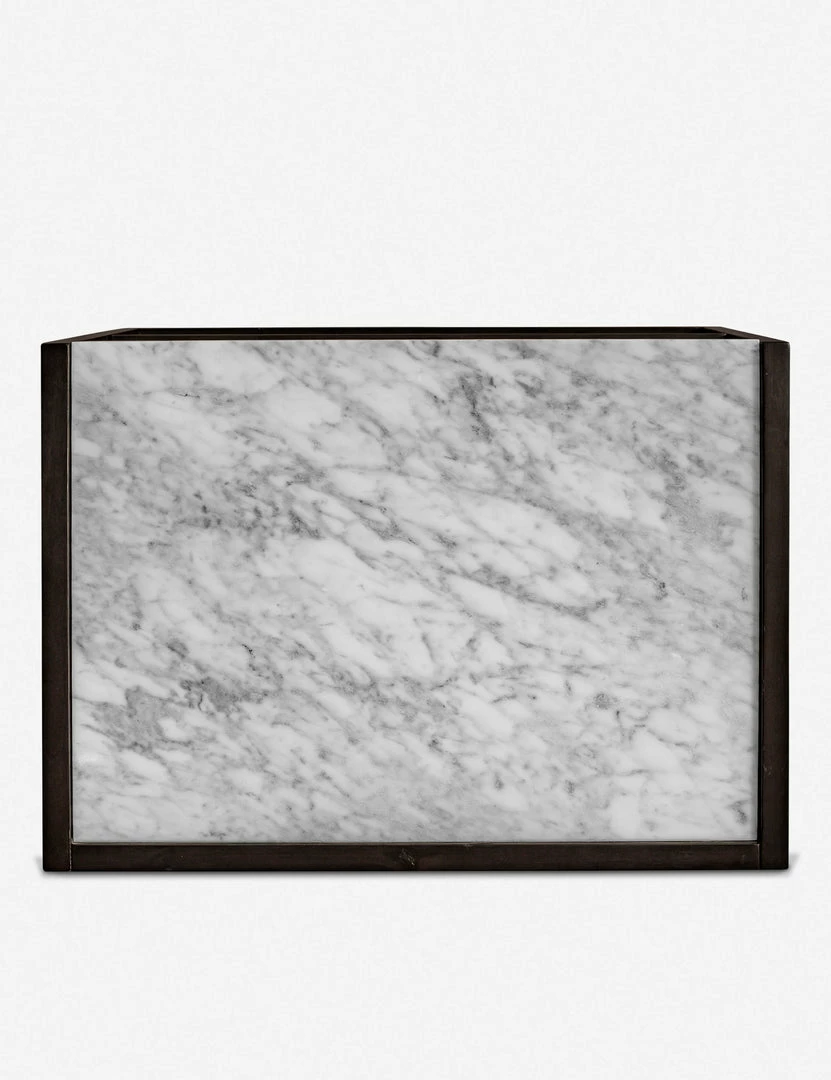 Bring the cool touch of white marble to your bedroom with this luxe nightstand. Clad in a dark acacia veneer to offer tonal contrast to its stone top, this bedside table features two deep drawers for a practical accent that will elevate your bedroom space.