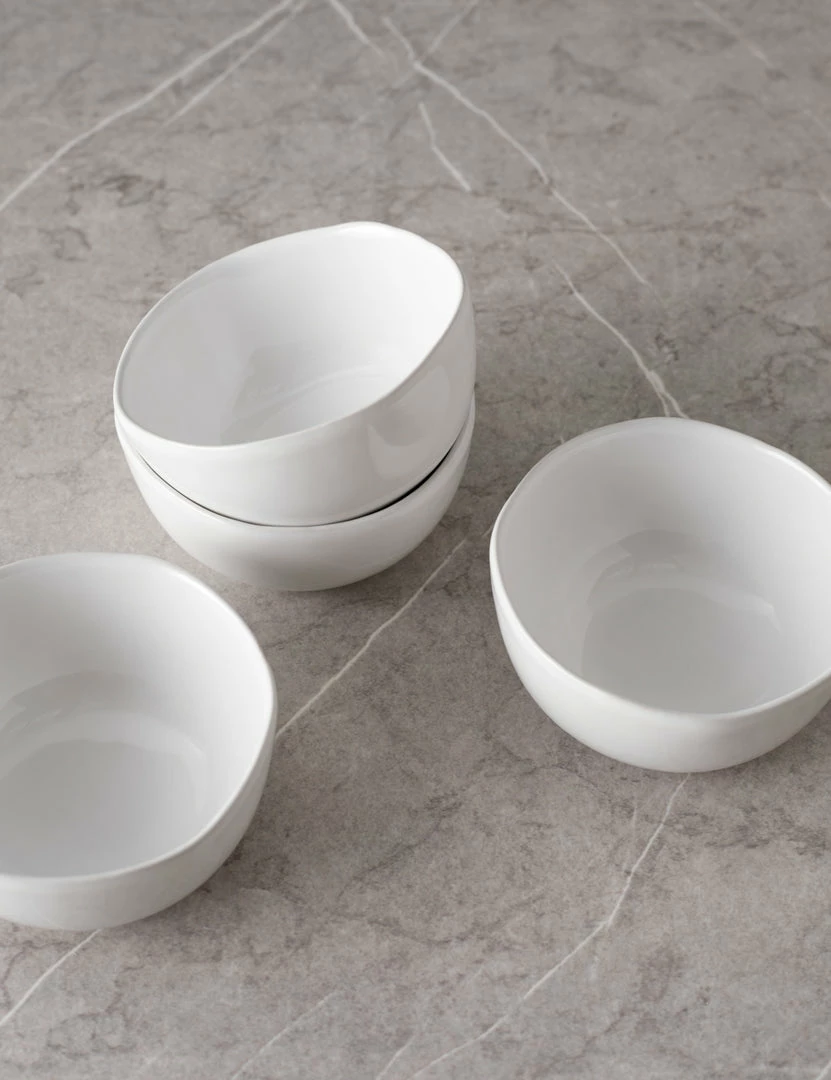 An artisanal touch marks the fluid forms of the Organic Dinnerware Collection by Hawkins New York. This set of small bowls is perfect for fresh fruit snacks or setting out dips when entertaining. Each stoneware bowl is crafted in Portugal.
