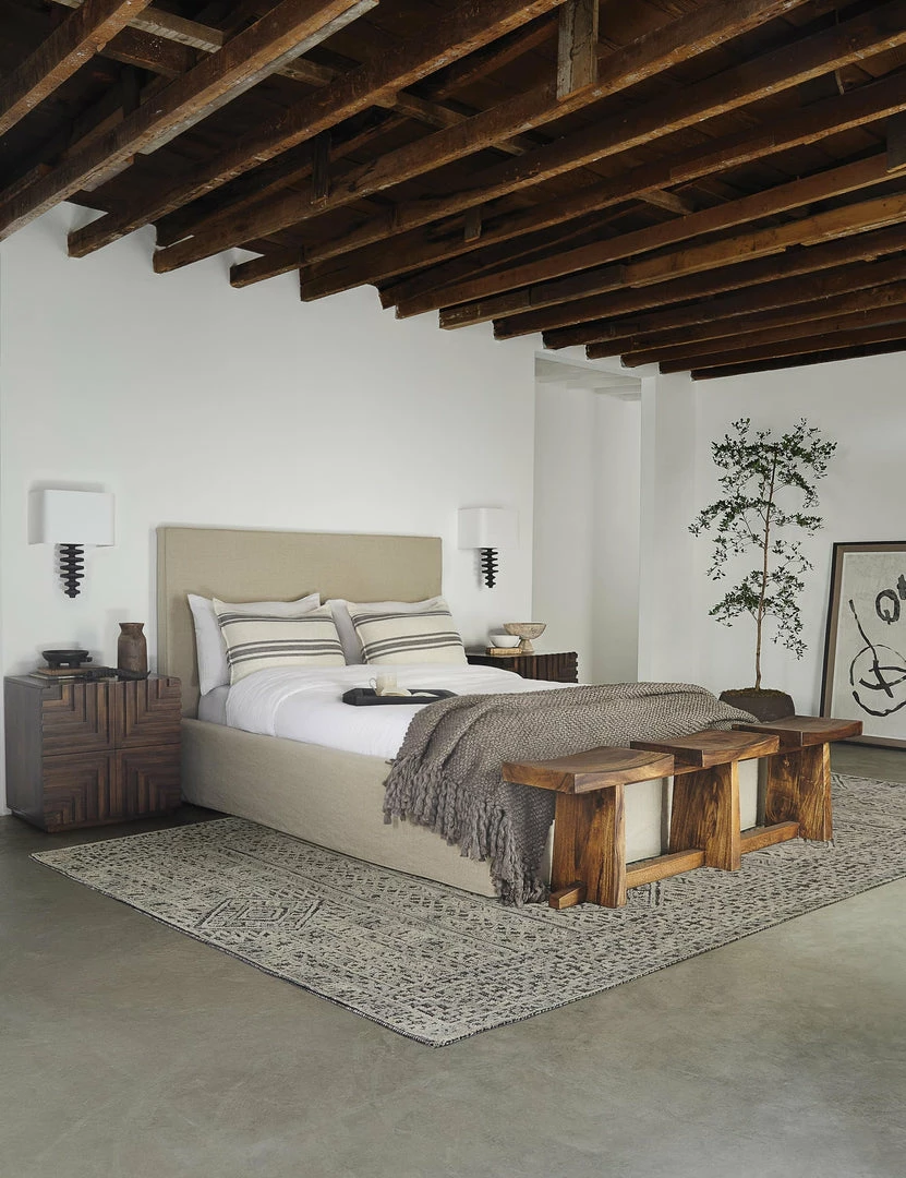 Intricately patterned area rugs instantly make any room feel more complete. This hand-tufted floor rug has an eclectic look that mixes well with modern styles, with a neutral palette and durable construction that’s great for high-traffic areas.
