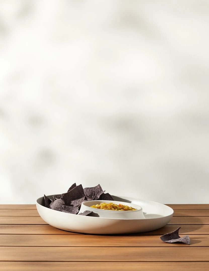 Sleek design in a sustainable style. From offering up chips and salsa to rejuvenating the party with vegetables and freshly made dips, this dip set is the perfect touch for entertaining or just shared bites. Plus, the center removes, and both platter and bowl are dishwasher-safe for easy-care, everyday bliss.