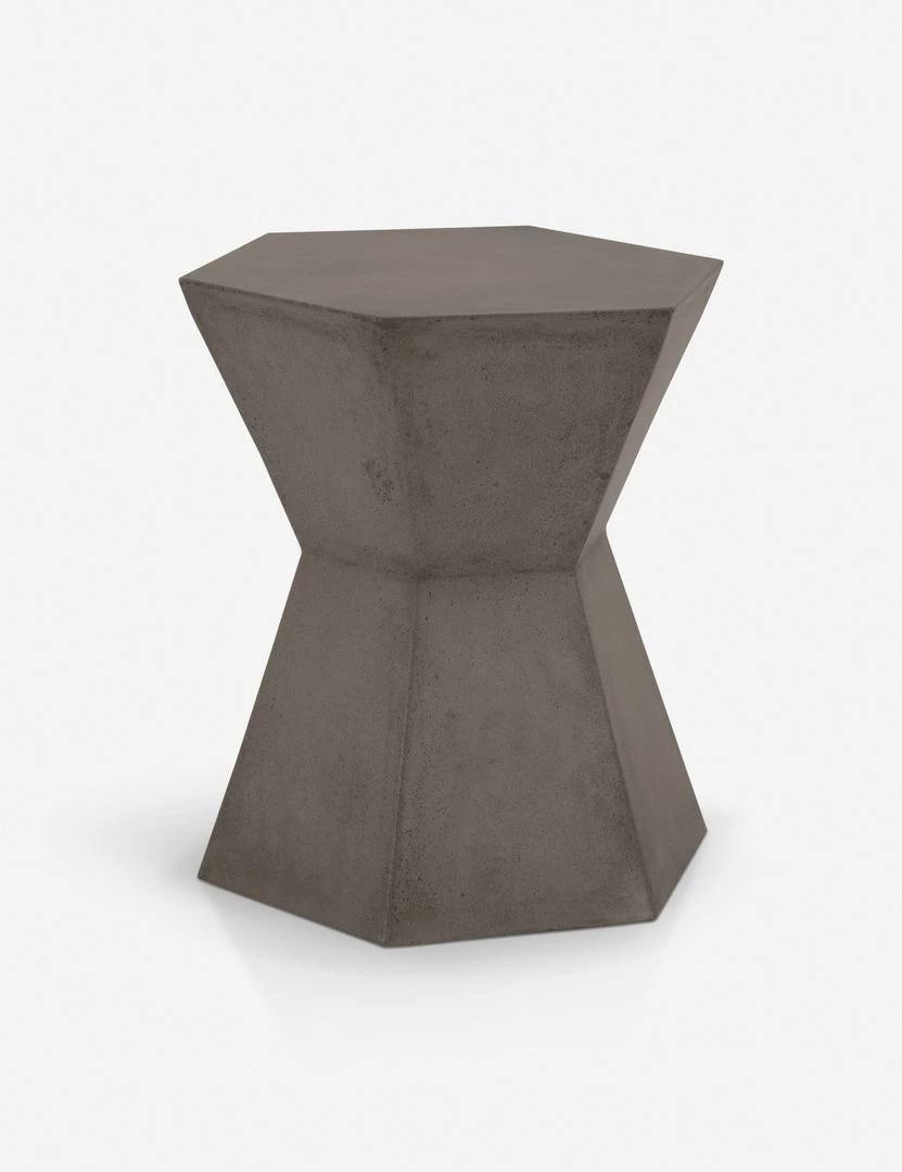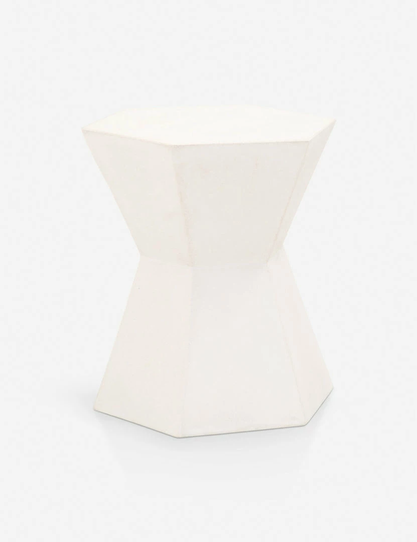 In a matte white finish, add a modern touch to your living spaces with this faceted, hour glass-shaped side table. Made from sealed concrete, this tactile accent table is both durable enough to sit outdoors and stylish enough to curate your living room with.