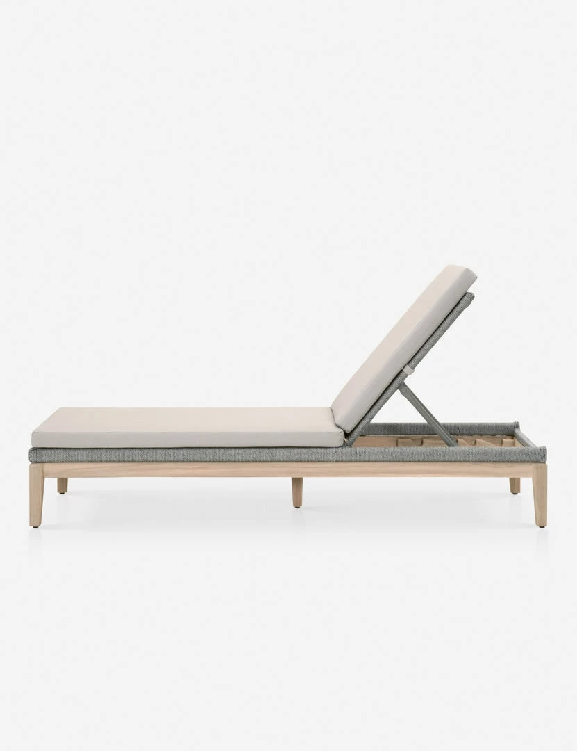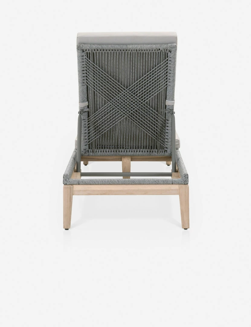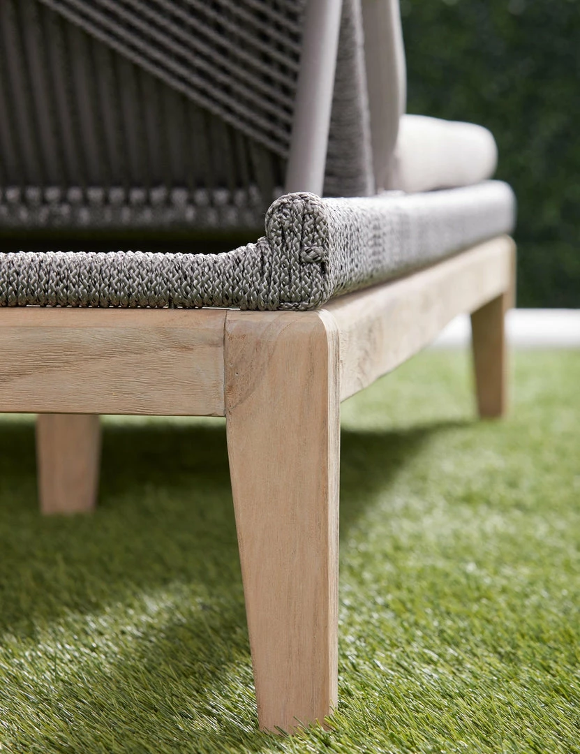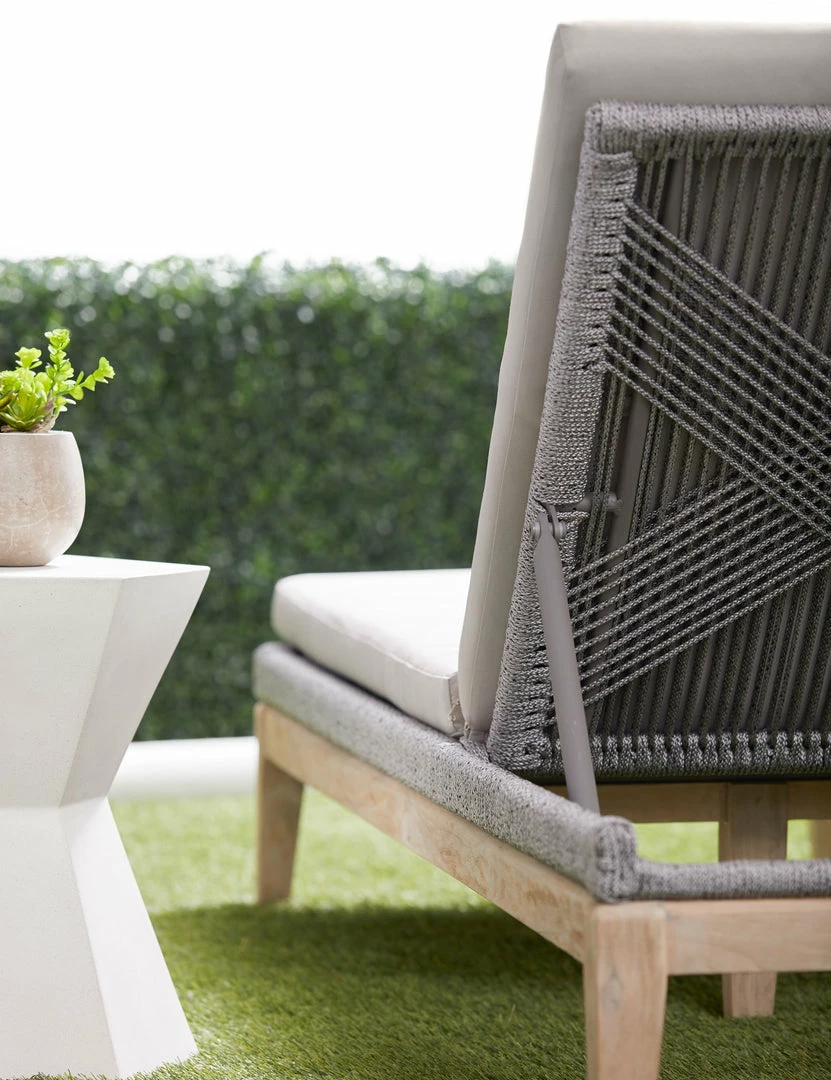 This London chaise seamlessly combines a unique loom woven design, high-quality mixed materiality, and cozy touches to bring laid-back coastal style to your home. A durable and sturdy teak wood base sits below a wrapped aluminum frame that showcases the intricately woven pattern and an adjustable backrest. We love the idea of using this chaise sofa to lounge poolside, on your terrace, or even in your sunroom.