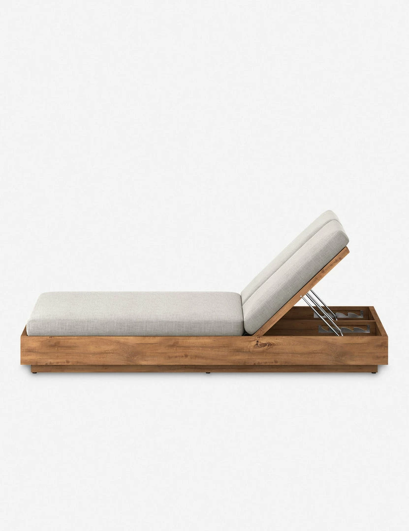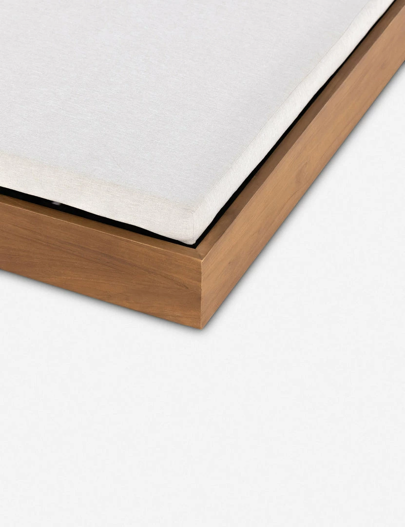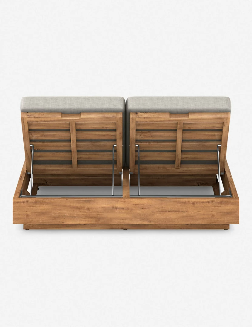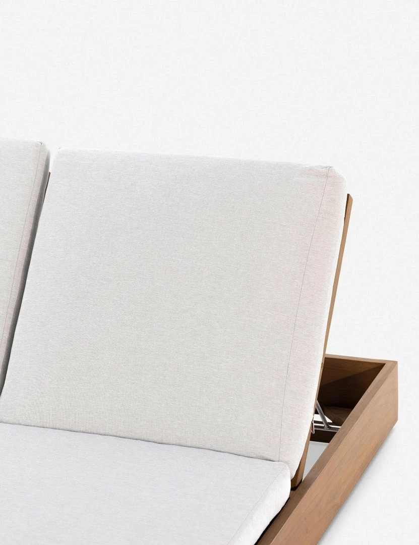 Streamlined design with a beautiful, solid teak box frame offers lasting style in this refined double chaise. The performance upholstered cushions and adjustable back offer dynamic comfort so you can lounge in ease. With its generous dimensions, this spacious chaise has plenty of room for two.
