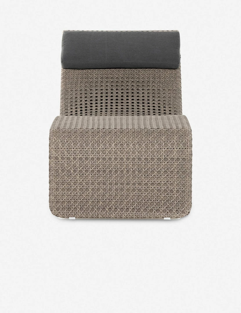 The curved lines of this chaise lounge set off a sculptural silhouette. Woven from all-weather wicker, this distinctive reclining chair offers endless textural appeal and an elevated tone for laid-back style. A detachable pillow completes the look.