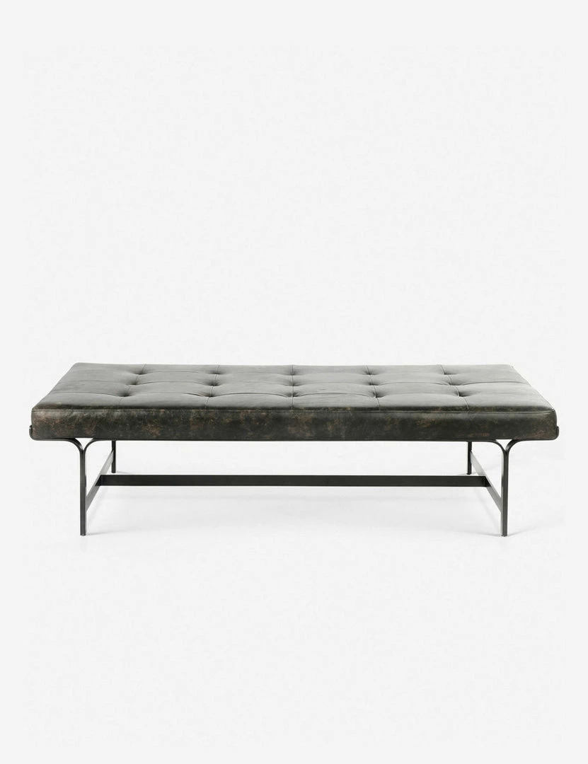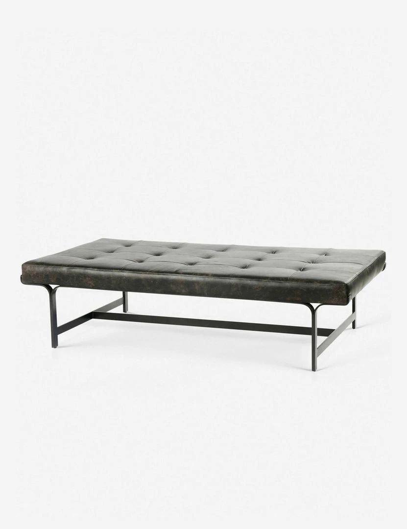 A few well-placed curves and a distressed leather finish bring old-world elegance to this tufted coffee table. Perfect for mid-century modern aesthetics!