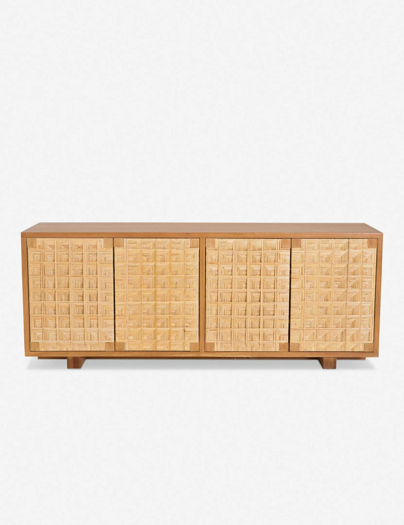 Intricately woven rattan doors outfit this mahogany sideboard with a rich textural motif that blends mid-century undertones with a fresh, artisanal style. With push-to-open cabinet storage, you can style this piece as a living room side table or dining room buffet.