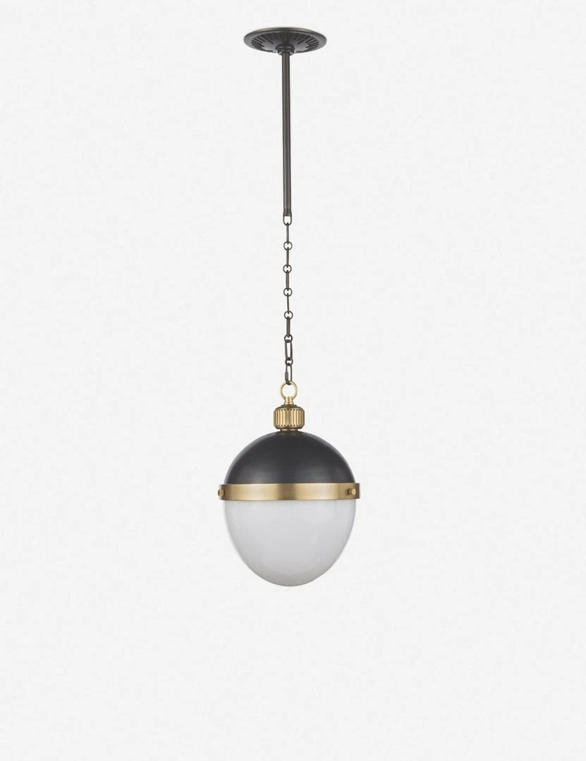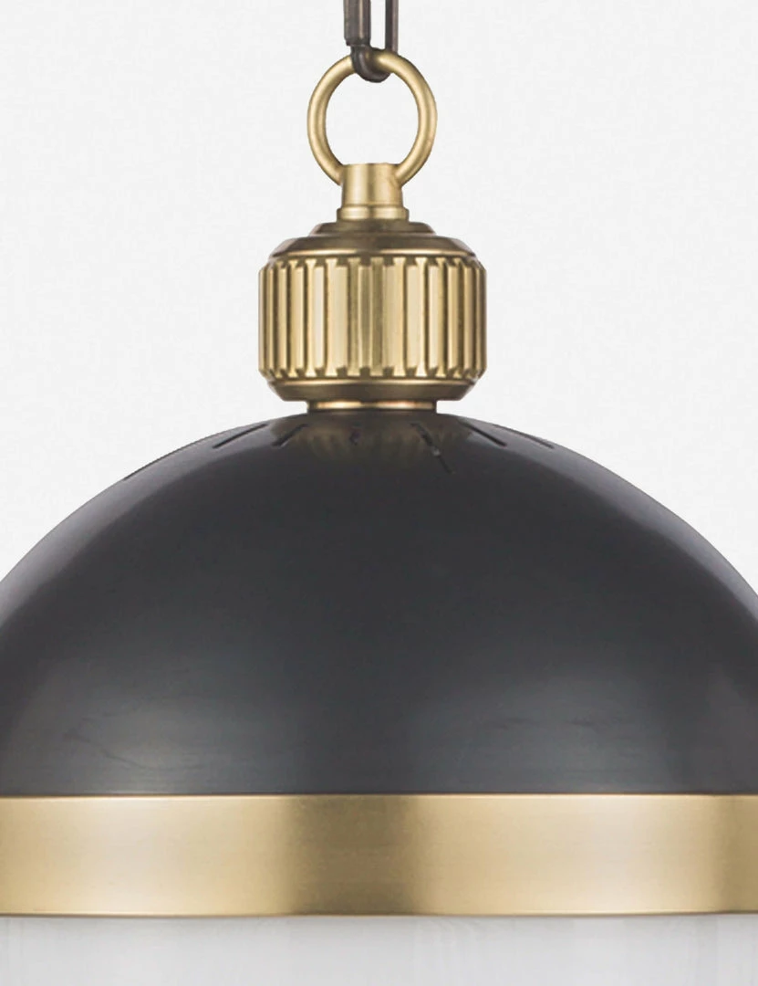 A mix of mod design and industrial elements makes this a fun lighting piece that doesn’t skimp on style. Featuring a frosted glass globe shade, topped with iron and brass detailing, our stylists are doubling (and tripling!) up to maximize its impact over kitchen islands and long dining room tables.