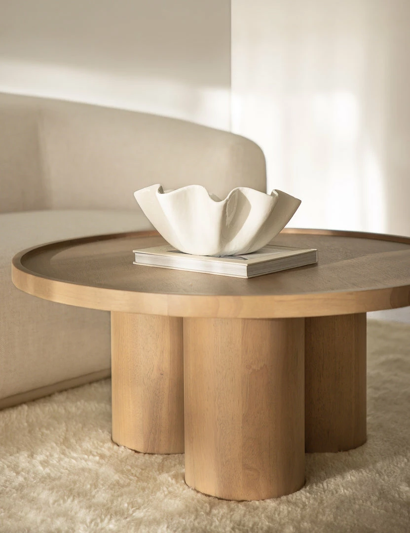 With its cream-colored glaze and ruffled edges, this decorative bowl evokes a timeless, nautical feel to it. Intricately crafted by skilled artisans, this oversized ceramic bowl is a standout centerpiece on your coffee table, dinner table, or sideboard. Or, add citrus fruits for a fresh vibrant look.