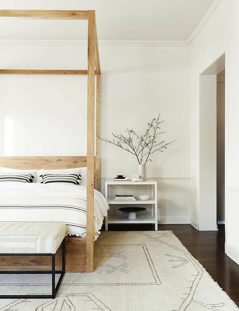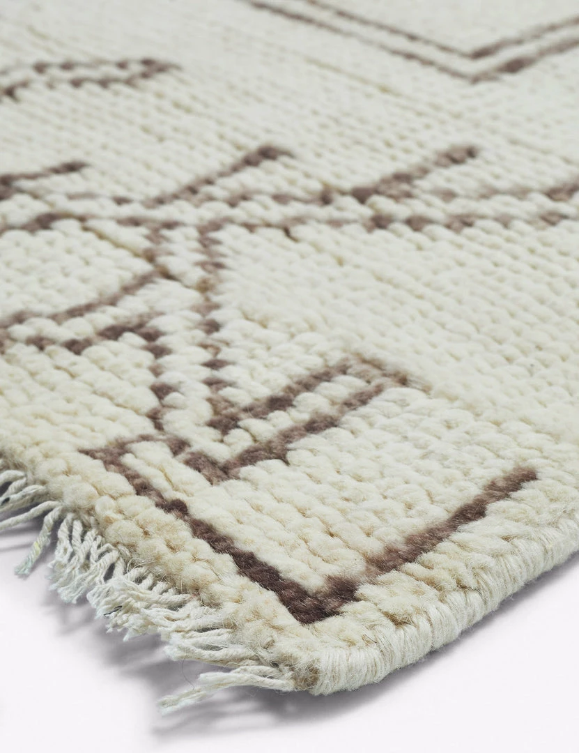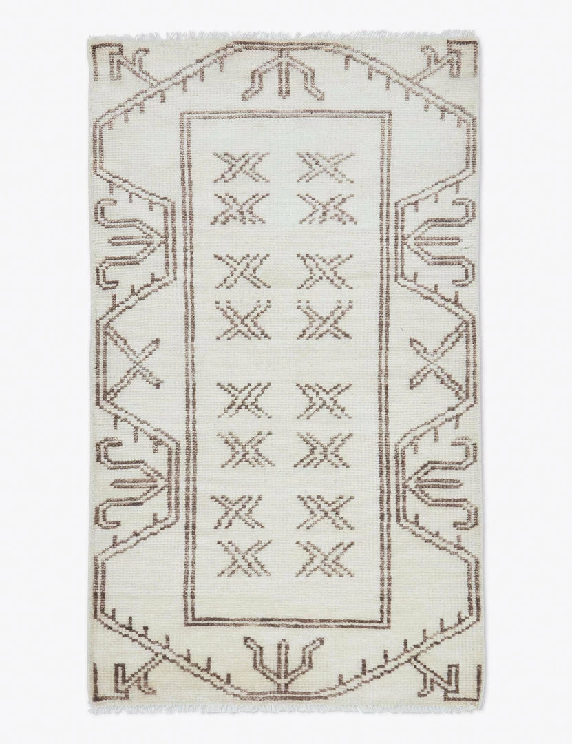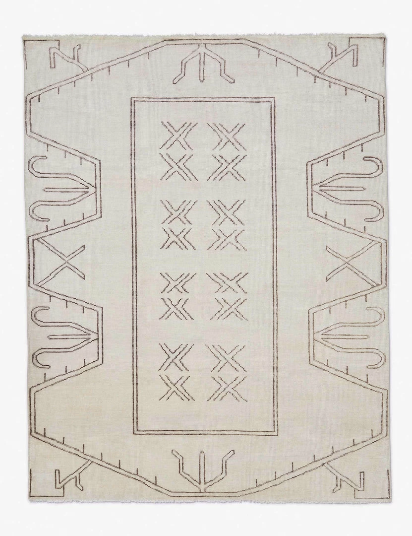 A reinvented geometric design in a warm palette that’s been meticulously hand-knotted together using 100% sheep’s wool, lending modern personality with a subtle hint of its Oushak influence. Soft wool illustrating striking symmetrical linework in a neutral hue makes this rug the versatile yet bold layer you’ve been searching for.