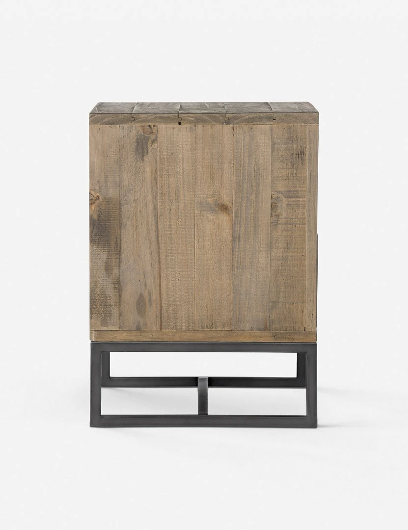 For bedrooms with a touch of rustic style, this nightstand fits right in. The unique grain and knots in the solid pine add endless character, and the metal base and handle-less design keeps the look totally updated.