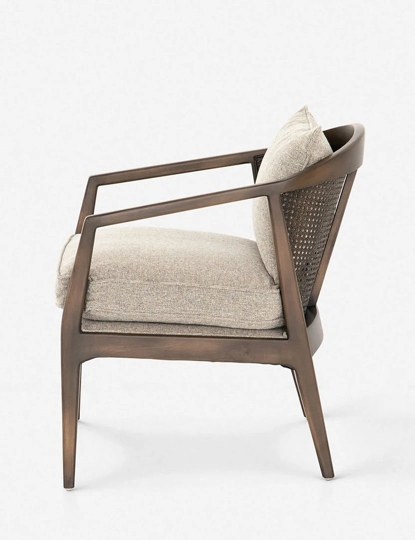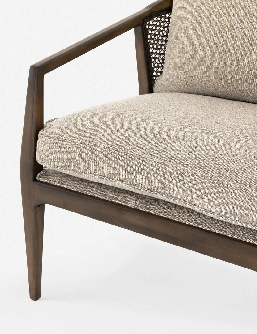Relax in style with this accent chair, designed with angled arms and tapered legs for a touch of Mid-Century Modern inspiration. Finished with a traditional curved wicker back and natural-tone cushions for a versatile, effortless look.