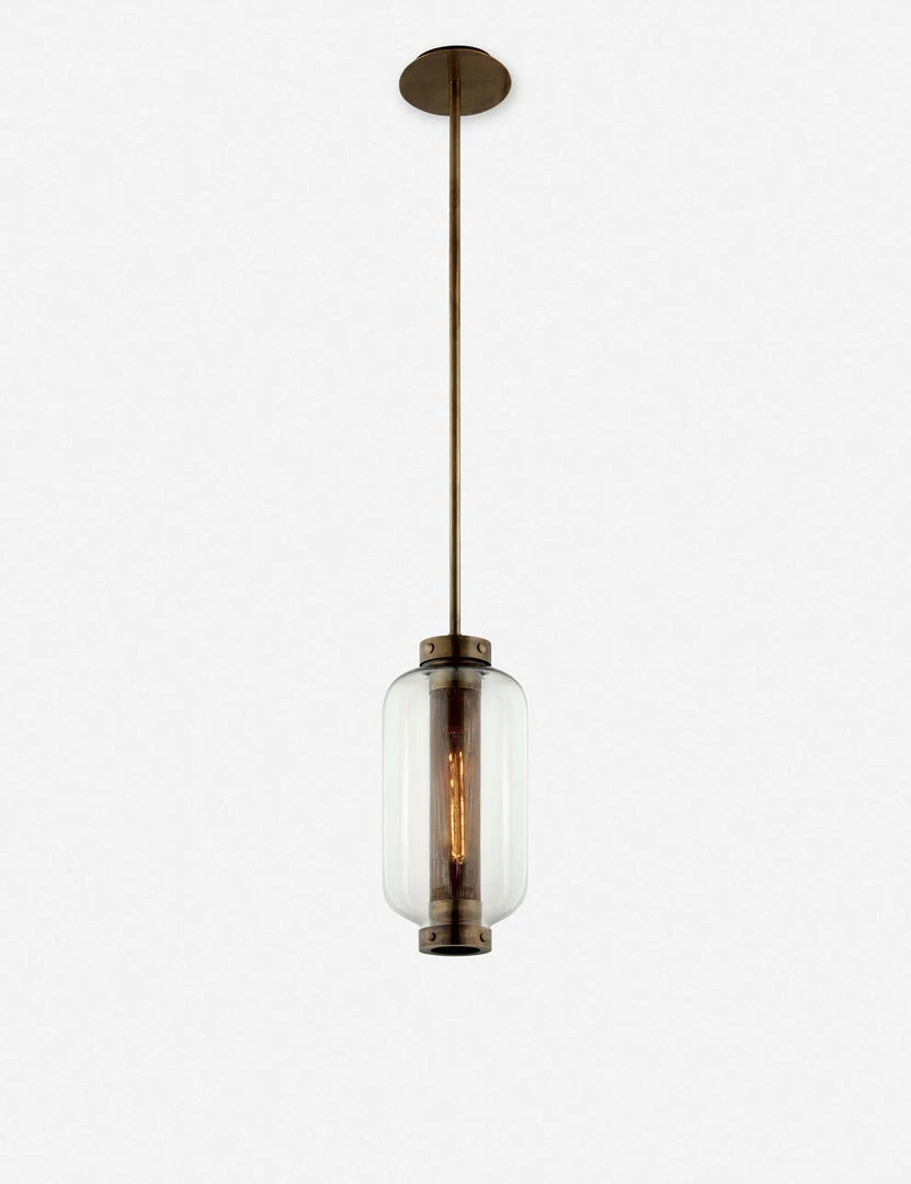 Whether you hang this pendant lamp indoors or out, it makes a serious style statement (and we can’t get enough). The filament bulb, encased in metal mesh, offers a soft, subtle glow, which contrasts beautifully with a clear glass shade and industrial vintage brass hardware.