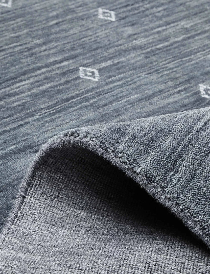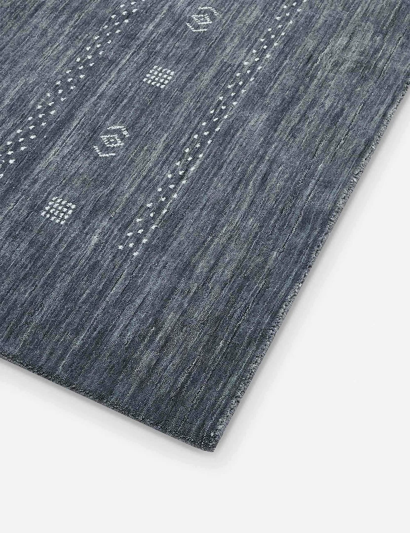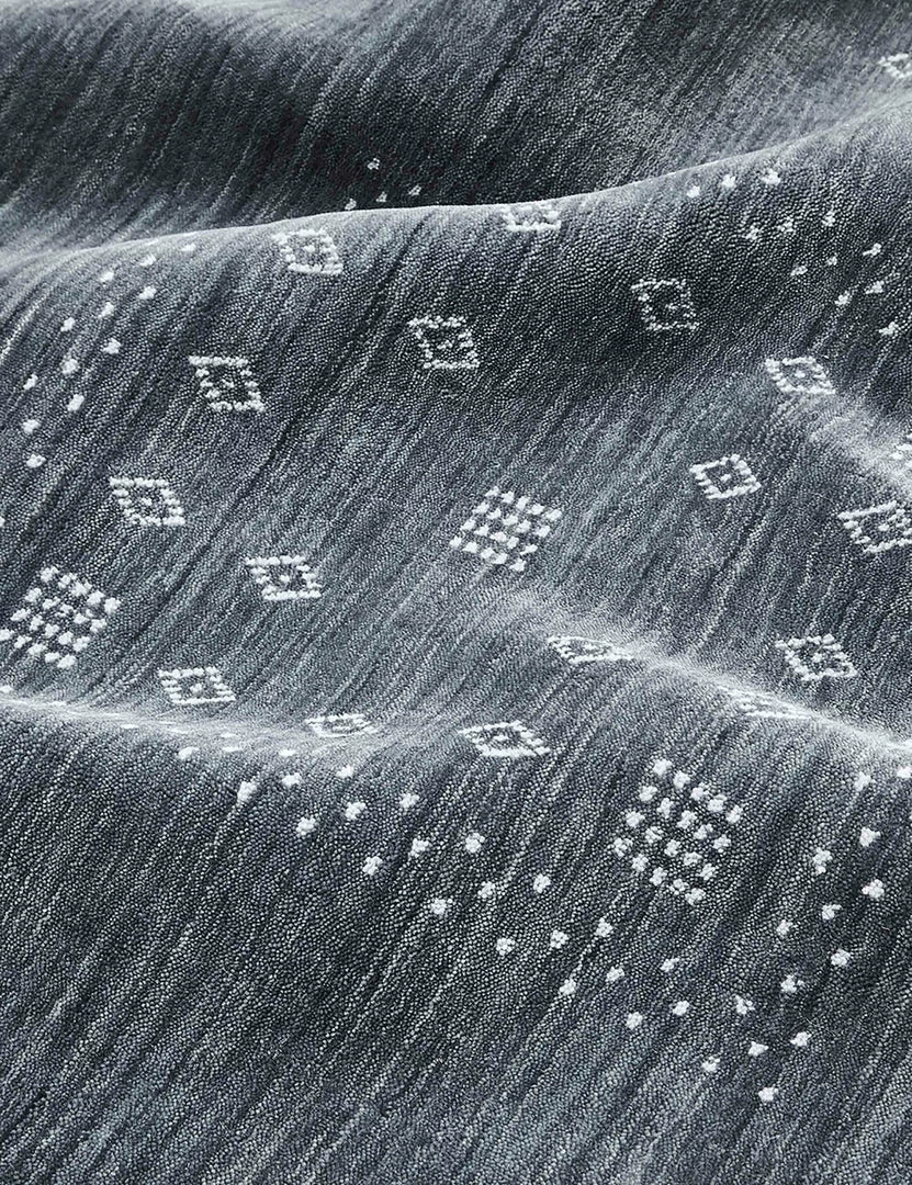 This wool area rug has a thick hand-knotted pile, bringing a cozy warmth to your home. Subtle color variations pair with simple geometric motifs inspired by Iranian gabbeh rugs to bring a well-traveled look and feel to this handmade rug.