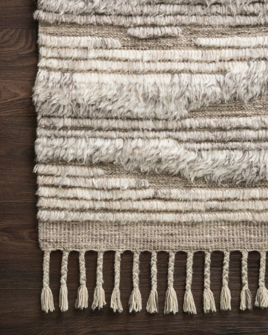 Inspired by trending Moroccan styles, this area rug combines hand-knotted patterns with varied textures to create a contemporary look we can’t get enough of. Shaggy undyed wool and twisted fringe offer varying tones and added dimension, making a globally chic statement in bedrooms and living rooms.