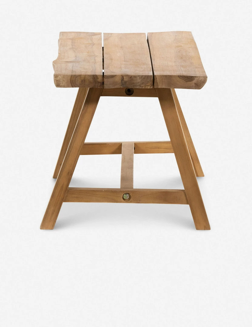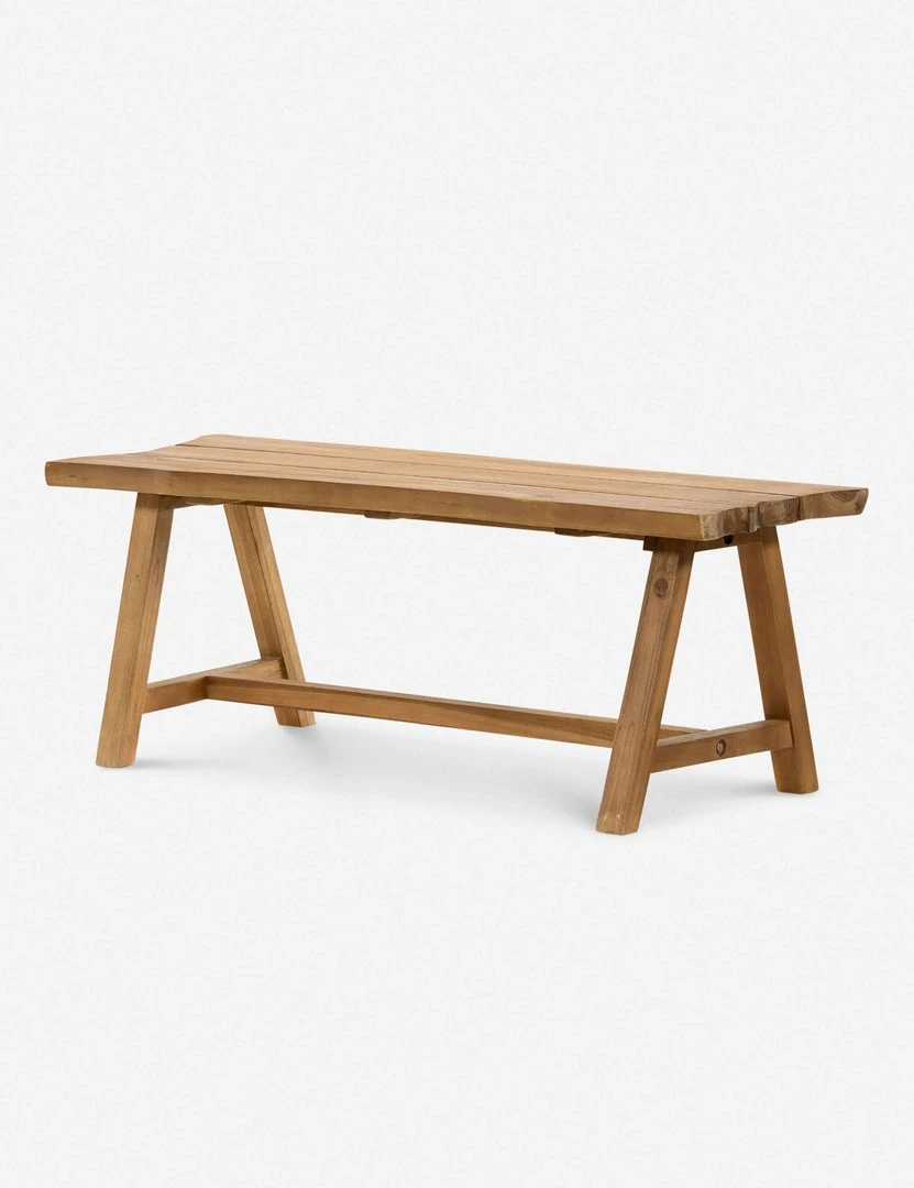 This roughhewn trestle bench offers versatile bliss to your indoor or outdoor decor. Style this bench for a rustic grounding touch in an entryway, or bring its handcrafted tone to the garden for flexible seating and a place for planters or lanterns.