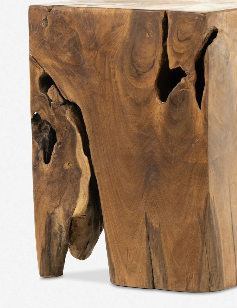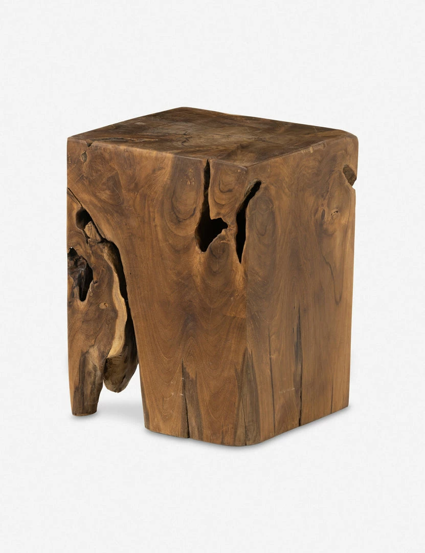 Clean edges and a square top add polished appeal to this teak wood stool’s abundantly rich knotting and natural grain texture. This stool offers endless organic warmth, whether styled with decor or floated as an extra surface or seat in a dynamic space.