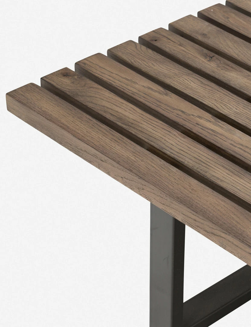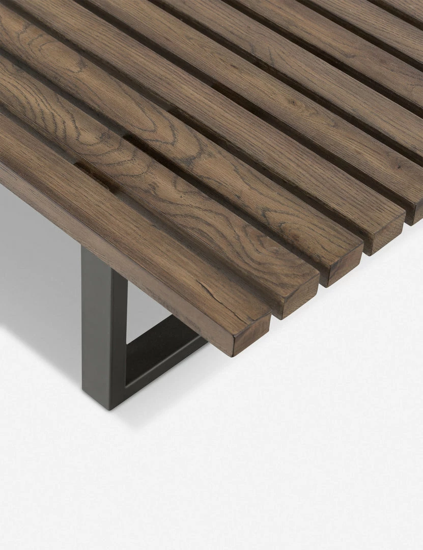 Refresh your look with the clean-lined, modernist profile of this coffee table. Featuring solid oak slats atop a streamlined iron frame, this coffee table casts an airy silhouette with minimalist appeal—style with curving sculptural elements for a balanced visual style.