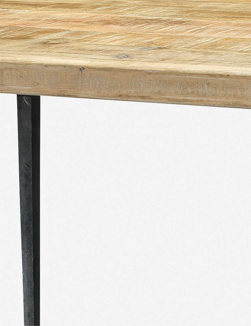 Your industrial farmhouse style just isn’t complete without this dining table. The hand-worked wood tabletop adds plenty of craftsman appeal, while hammered antique legs bring a little modern contrast.