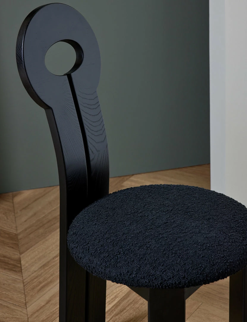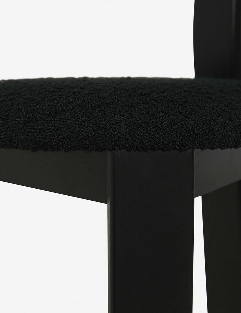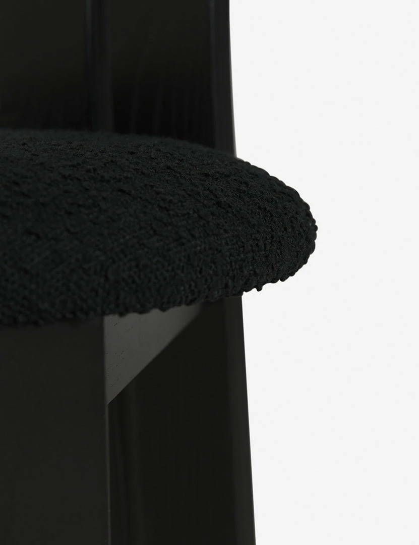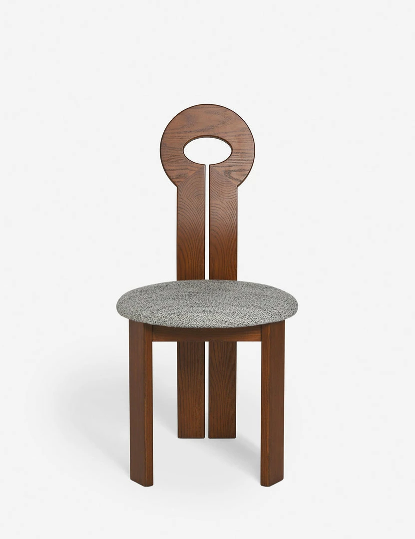 This chic dining chair pairs a sculptural frame with minimalist design. The front legs angle towards an eyelet-style back to create a refined dining or kitchen chair, and its upholstered seat lends it a touch of everyday elegance. This piece is from our exclusive Sarah Sherman Samuel collaboration and features all the trademarks of her warm, edited style.