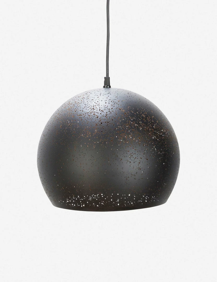 This painted metal pendant combines scattered flecks with perforated holes that conceal a single bulb when not in use. When turned on, it produces a dazzling display that resembles the stars at night. The styling options are endless here; pair with matching shapes and colors or mix silhouettes and hues for a wanderlust light display that’s all your own.
