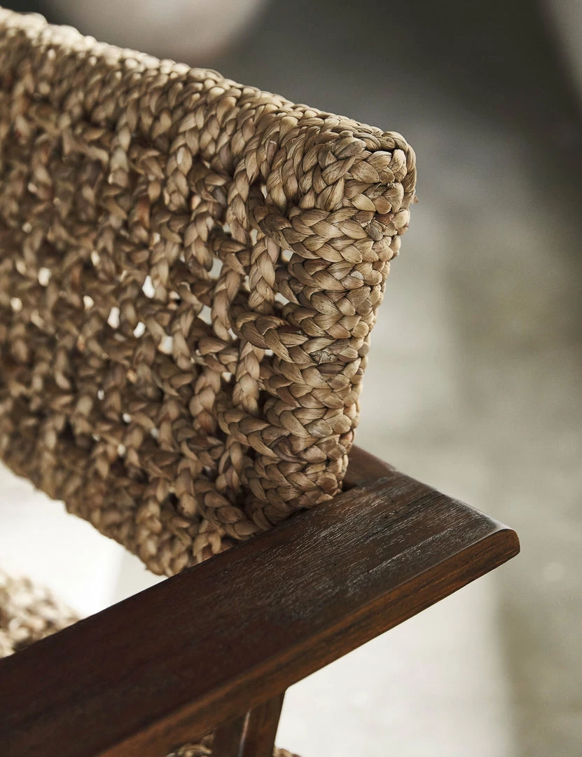 Modern design meets bohemian materials on this accent chair with arms. The curved wooden frame holds a cantilevered seat, woven with natural banana fibers for a high-textured look. We love this accent chair styled in living rooms or bedrooms for added seating.