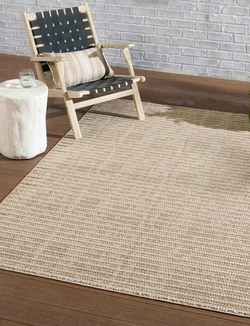 Richly heathered stripes run across this textural area rug creating a design that is as easy on the eyes as the feet. This versatile rug offers a refined touch. Weather-resistant and durable, it is a great fit for outdoor living spaces, as well as high traffic areas like entryways and living rooms.