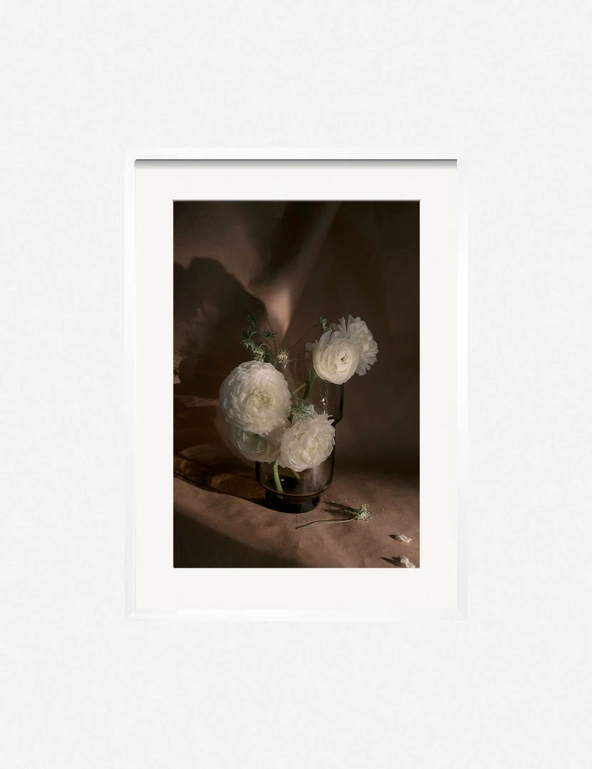Winston-Salem-based multidisciplinary artist Ashley Johnson uses mixed media to create her staged portraits. Delicate blooms draw the eye into this still life from a series taken in the deep, stark shadows and warmth of the sunset, marked by strewn petals and vintage tinted glass. This wall art print was produced using archival inks to achieve long-lasting, true-to-color richness, outstanding resolution, and an even ink lay for a stunning gallery-quality addition to your art wall decor.