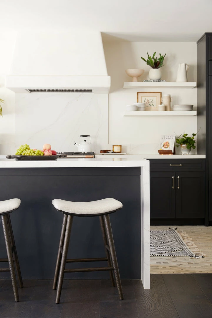 A curved, upholstered seat brings a contemporary twist to this classic counter-height stool. The perfect way to elevate your kitchen or dining room.