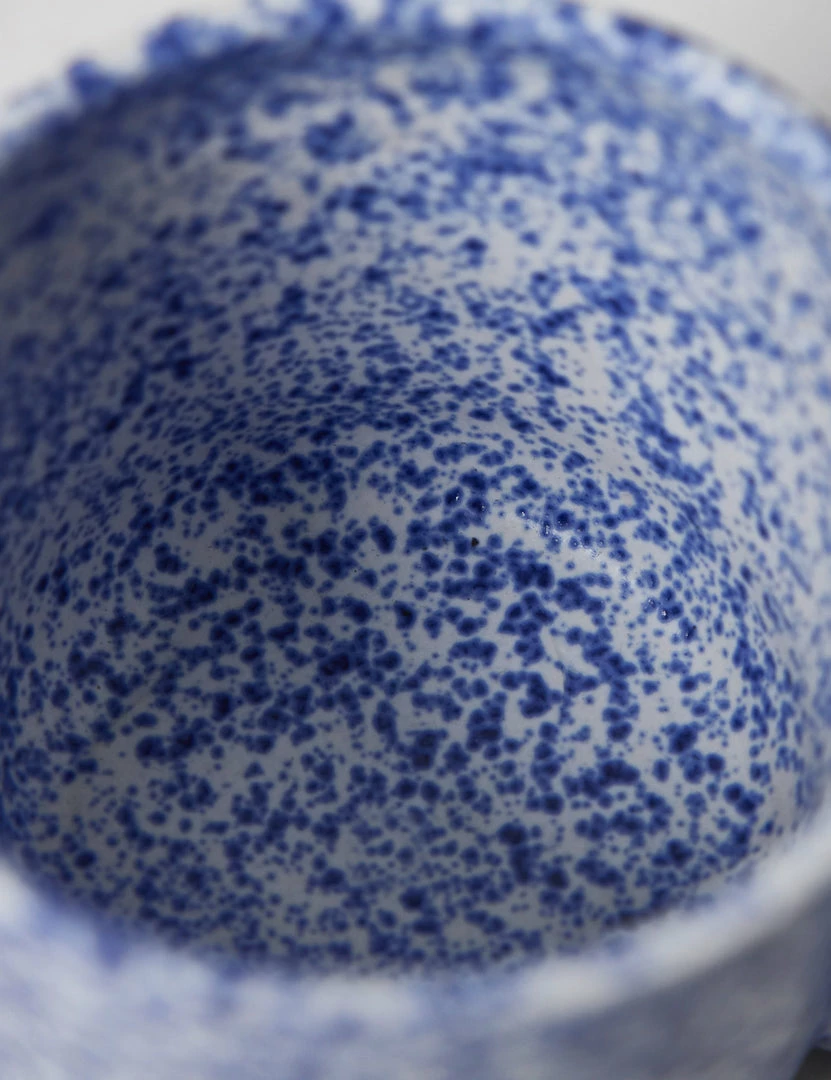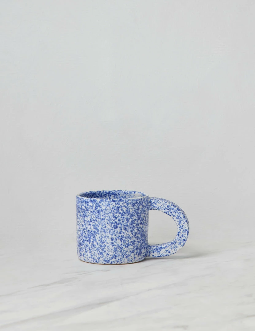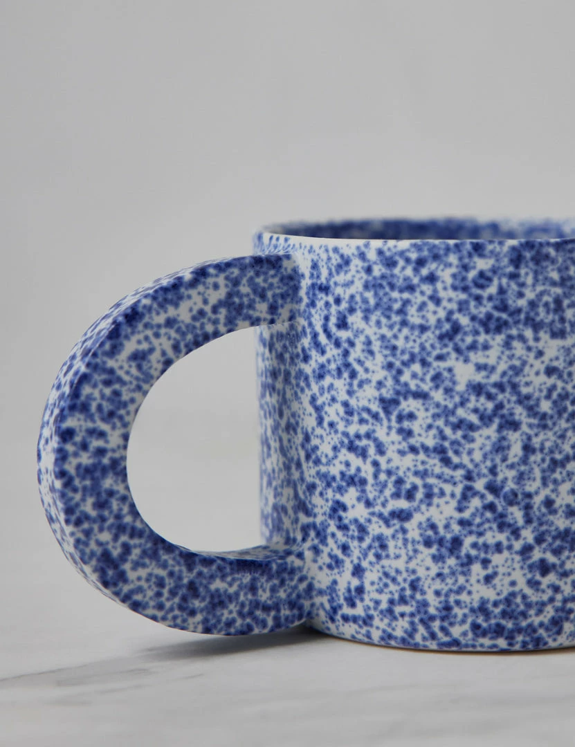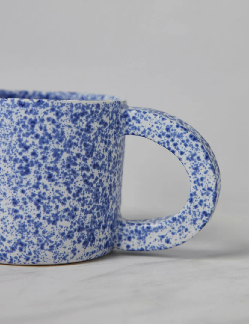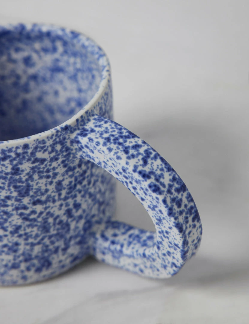 Salamat Ceramics transforms natural materials into simple but elegant everyday objects for your home. Each handmade ceramic mug is finished with a matte blue splatter glaze and fitted with a large, squared handle for hearty gulps full of artisan appeal. This unique blue and white coffee mug offers a subtle rustic charm that can complement any drinkware collection.
