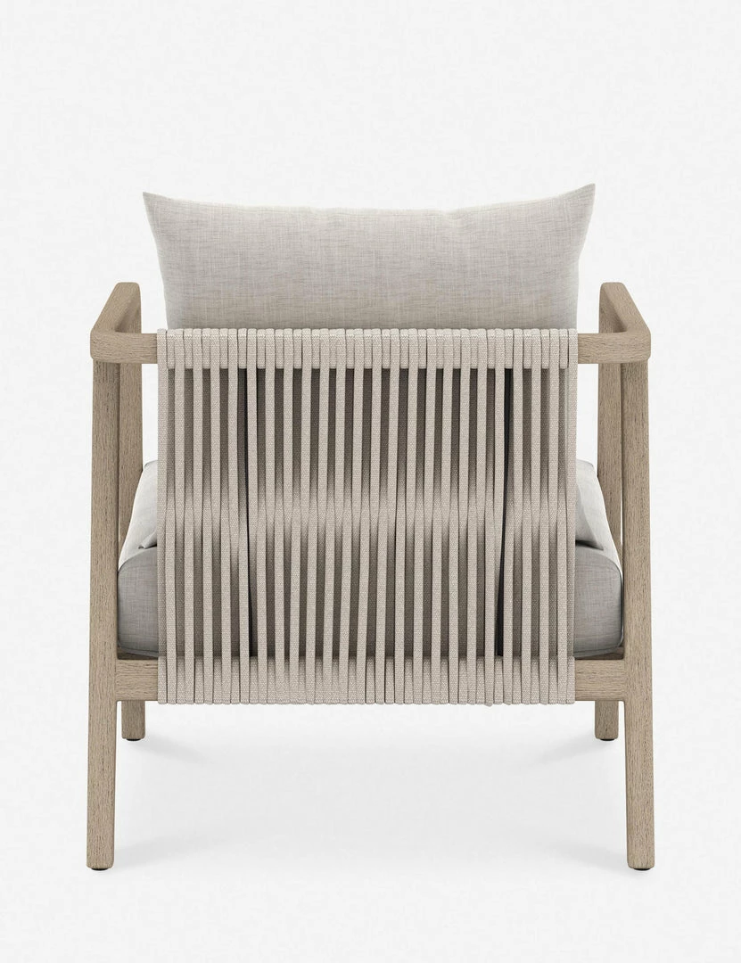 A streamlined design features an airy frame with sculptural lines in this inviting accent chair. The woven rope detailing and plush, weather-resistant cushions offer the perfect place to land for fresh-air lounging all year round. We love this chair for a refined touch in a sunroom or garden terrace.