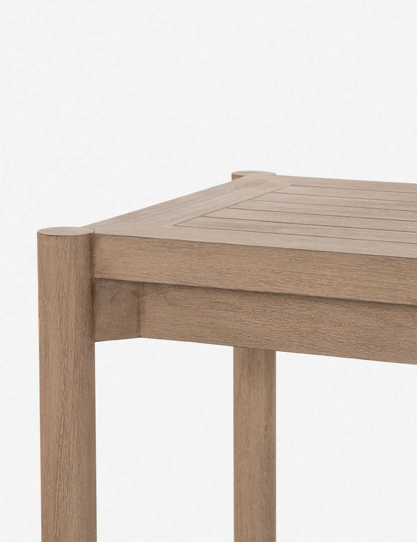 This slatted top side table is poised for understated elegance. A light finish highlights the FSC-certified teak grain for a transitional design you can style indoors or out. Style this end table next to your favorite seat for a gently elevating accent with extra table space.