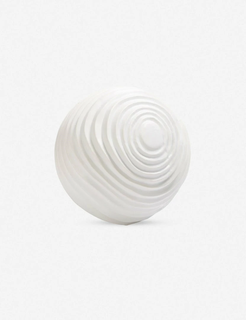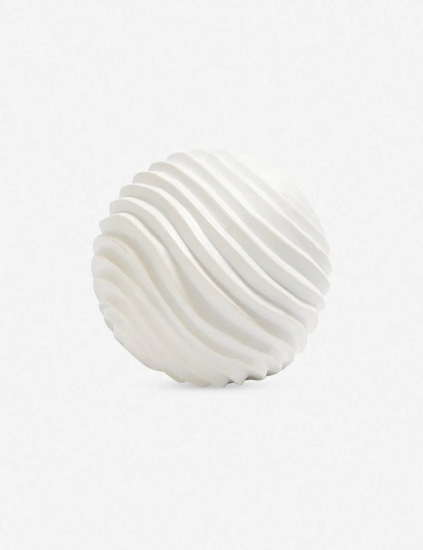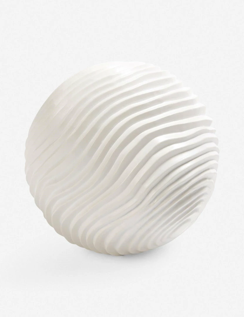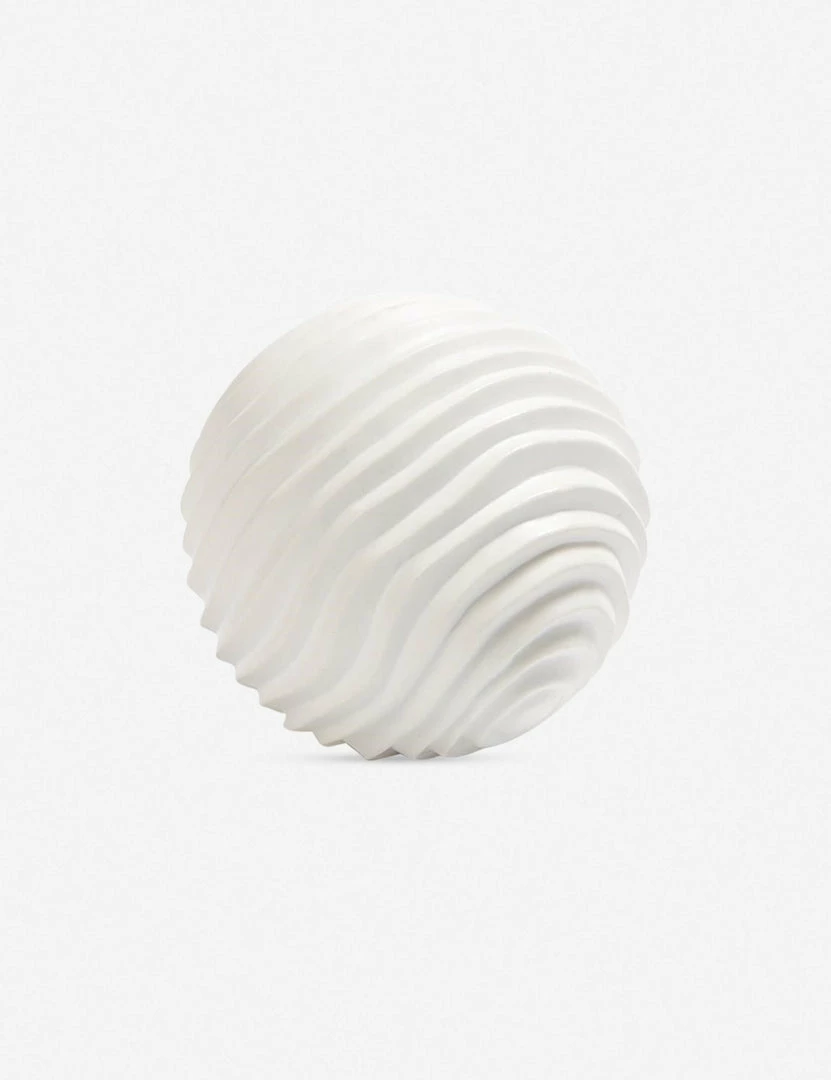 Timeless decor gets a modern twist in the rippled lines of this ceramic orb, perfect as accent tabletop decor. Each piece is intricately carved for a dramatic bit of texture and endless visual appeal. Mix and match sizes to bring a dynamic new dimension to any tablescape.