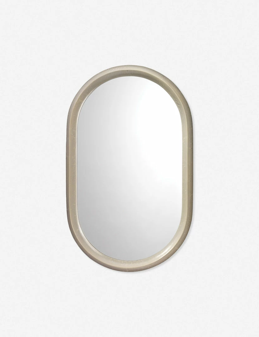 Crisp lines bring a refined edge to this stylish oval mirror. The molded frame features a polished finish creating a bright and elevating addition for a transitional look or minimalist aesthetic.